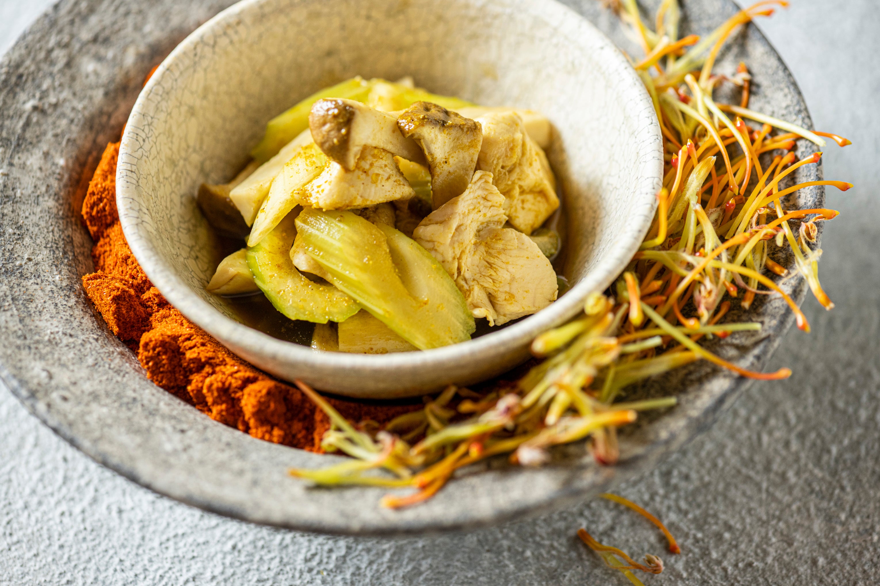 盛り付け方次第で料理は表情をガラリと変えていくその瞬間を楽しんでいただければと著者は語る。