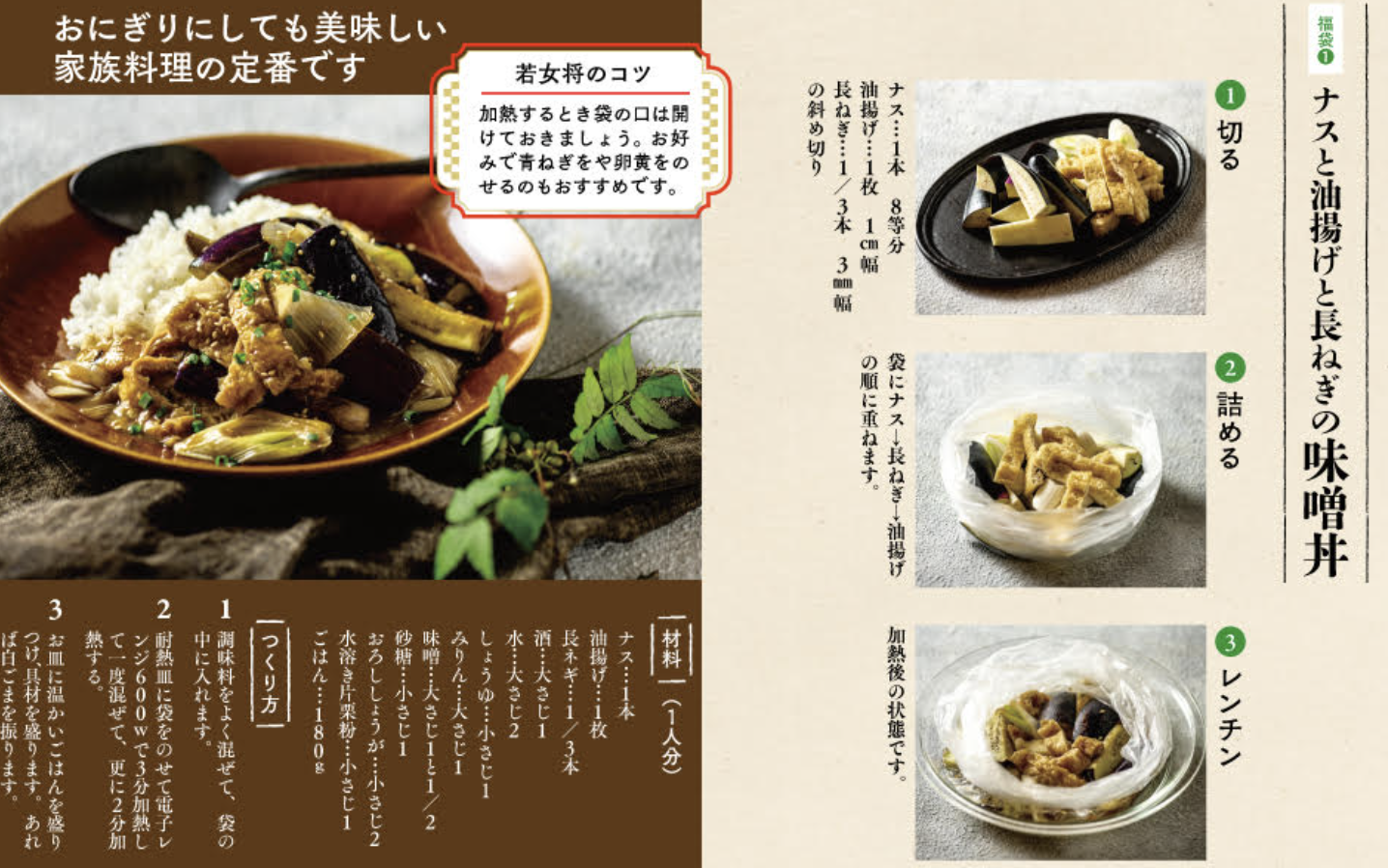 料亭の娘、料亭の若女将という肩書きからだいぶ外れたビジネスを数多く展開する伊藤ミナ子(著者)=「はぐれ行動ばかりしてしまう、「ちょっと駄目なはぐれ系若女将」が「ちゃんと作るのもいけど、お鍋やフライパン洗うのは少し面倒な時もあると思い、耐熱袋1枚で全部作れたら楽ちんで、、盛り付けとかこだわりたい所に時間を持てるし、子育てやシニアや一人暮らしに役立つはずかな?」と考え生まれた