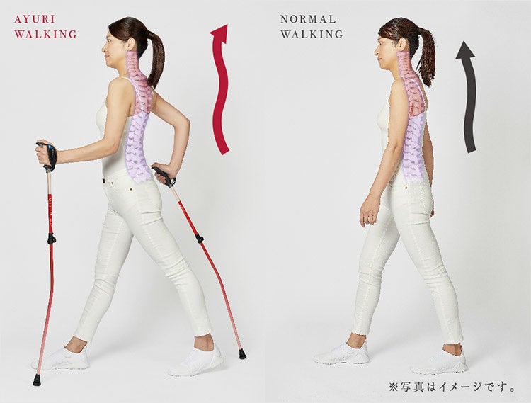 「AYURI STYLING POLE (アユリ スタイリングポール)」は、リハビリテーションのノウハウによって生まれた新しいウォーキングポールです。特許技術を取得した独自構造によって、正しい歩行姿勢をサポートします。さらに肩甲骨の動きが活発になることで背中周りの代謝が上がり、運動効率を高め、スタイルアップも期待できます。風に揺られる百合の花のように、しなやかな美しいうしろ姿へ。