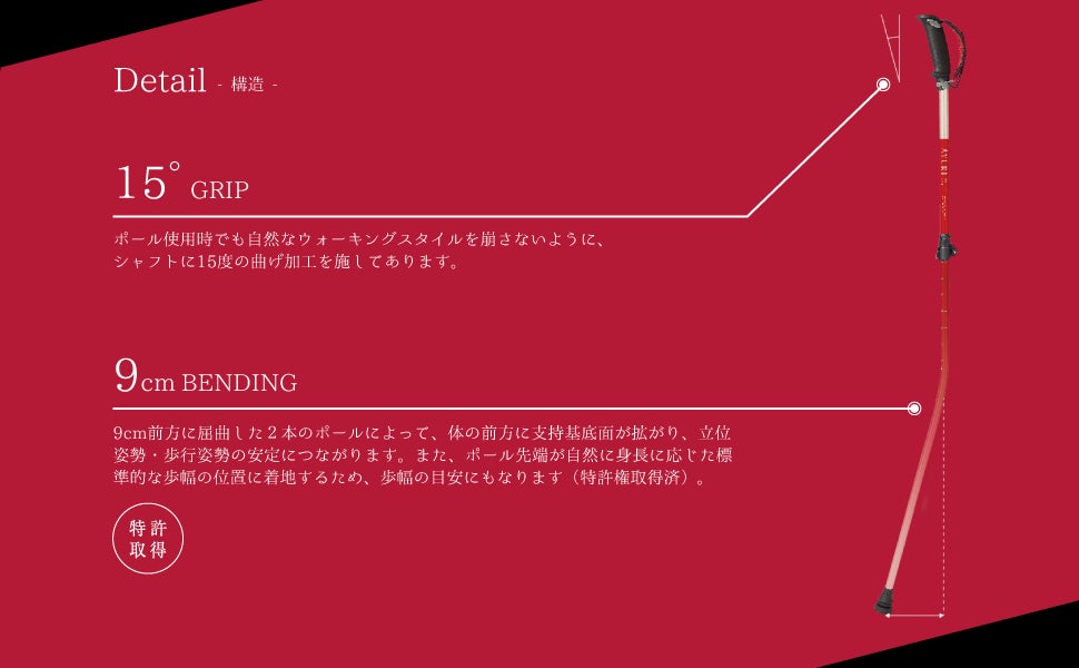 現代日本人の抱える健康への不安を解消し健康寿命を延伸させられるモノ、そしてどの世代の方でも気軽に出来るウォーキングに着目し、弊社の経験とノウハウを最大限活かして「AYURI STYLING POLE (アユリ スタイリングポール 以下、ポール又はAYURI)」を開発いたしました。
