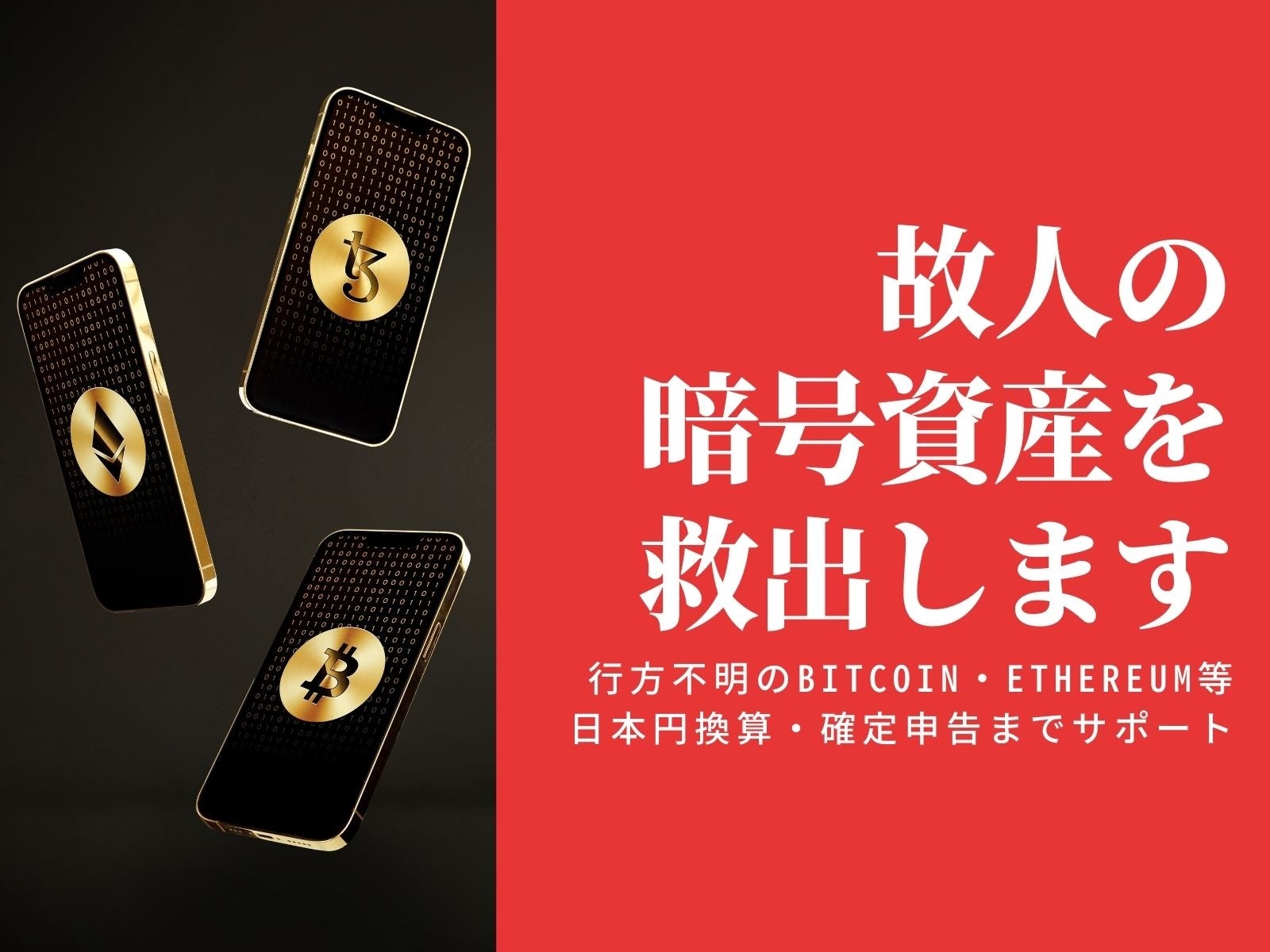 2022年、本サービスをアップデートし、お亡くなりになった方が所有していた暗号資産(仮想通貨)の調査・救出サービスを開始します。デジタル遺品と言う言葉が作られてから7年目。デジタル遺品の案件には故人が生前に撮影された想い出の写真や近親者のアドレス帳などのデータ以外に、金融資産の調査依頼を頂く事も少なくありません。そこで、国内外の銀行や証券会社の口座はもとより、埋没していた暗号資産を救出。その資産の損益を見える化し、日本円への換金・両替。難しいと言われる申告の計算までもサポートします。適切な相続を実現し、意図しない追徴課税を防ぐことで、ご遺族の未来を支援致します。