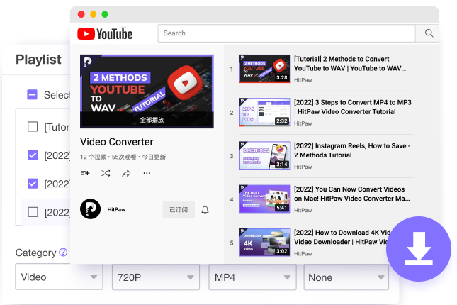 NEW:バージョン2.3.0に追加された新機能はYouTubeからプレイリスト全体を簡単にパソコンにダウンロードすることができ、プレイリストからすべての動画をスマートに解析し、動画を一気に保存し、動画の品質は1080p、2k、4k、8kまで達成できます。