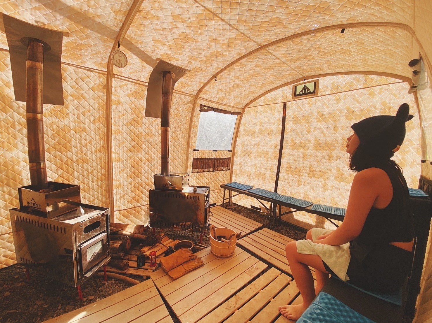 肝心のサウナでは、最大130℃超まで上昇するロシア製本格テントサウナを3基設置。日本全国のサウナに精通したプロサウナスタッフ常駐のもと、お客様のレベルに合わせて温度管理をさせていただきます。