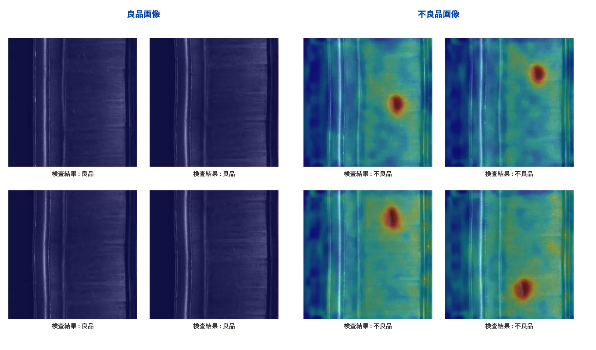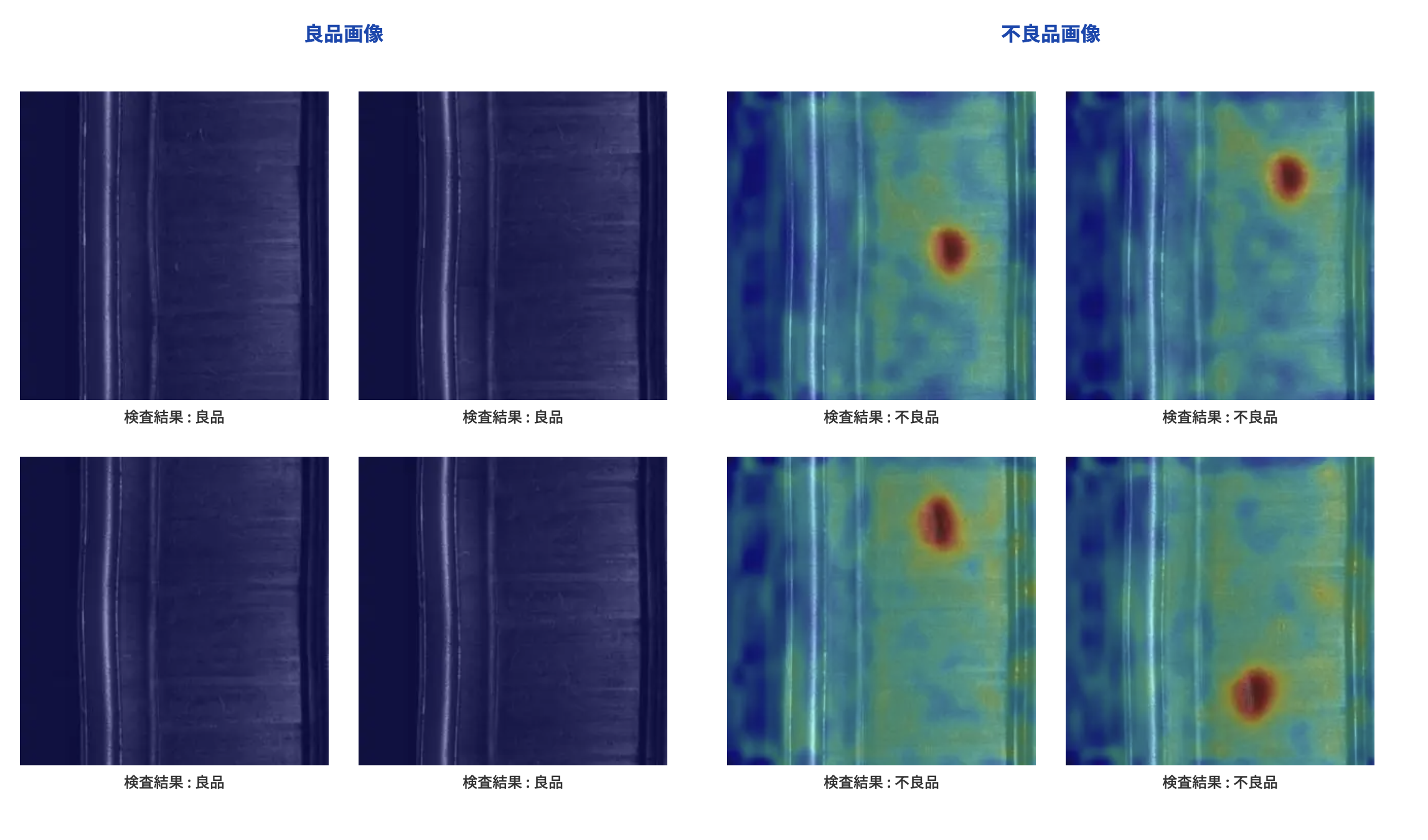 このような課題に対して、本サービスでは少数の良品画像のみで簡単なAIの検査精度の検証が可能です。