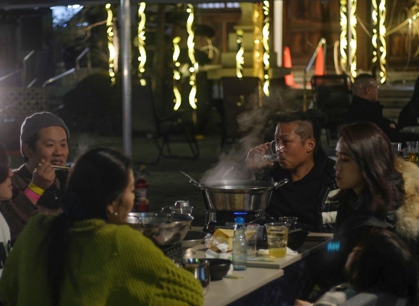 暖かいこたつラウンジで、美味しい料理を召し上がりながらおくつろぎ下さい。こたつテーブルは、まだ肌寒い3月の屋外にぴったりです。