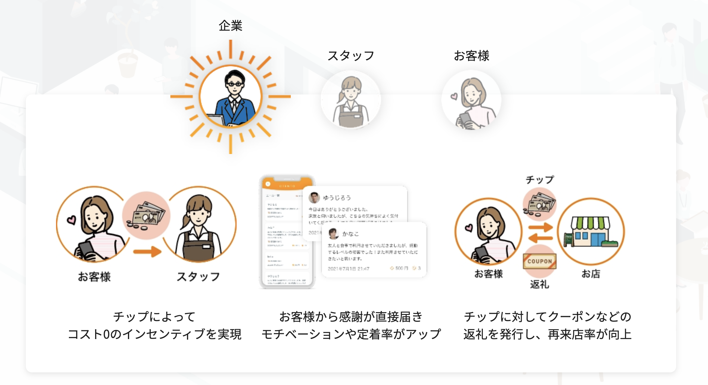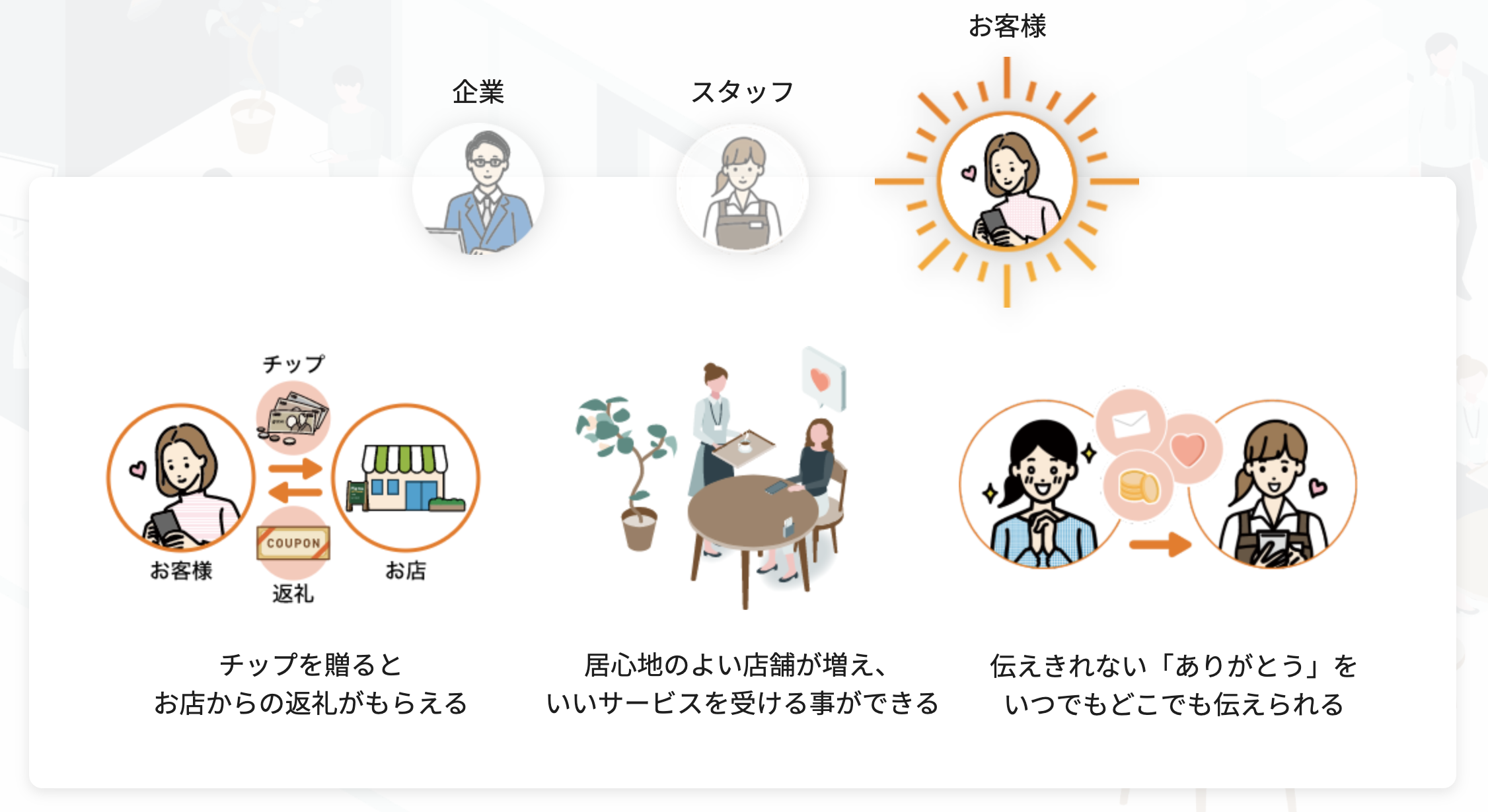 実証実験期間に利用したお客様は「良い接客をしてくれたスタッフを応援できるのは良いと思った。」「クーポンが貰えるので、サービスを利用することに抵抗があまりなかった。」といった声を頂いております。