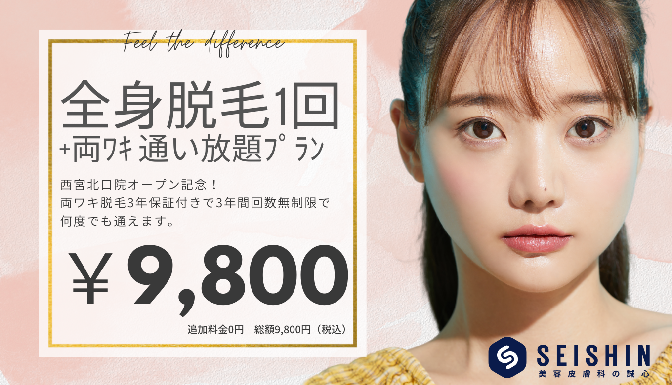 総額9,800円で通い放題付きの顔とVIO含む全身医療脱毛ができる「全身医療脱毛1回完了プラン」が新登場!/ 医療脱毛をもっと身近に - 誠心美容クリニック