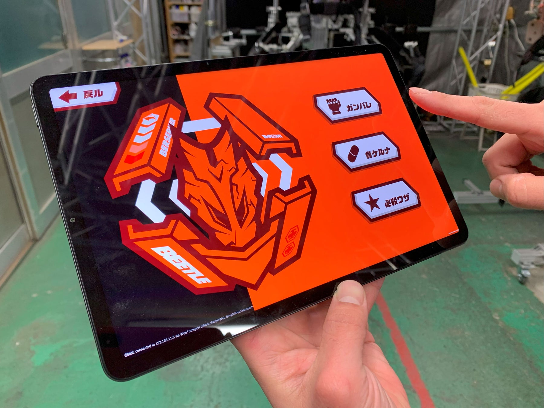 機体に内蔵されたセンサーがパンチの打撃を判定し、まるで格闘ゲームの中に入ったように対戦することができます。さらに、戦局を覆す必殺技の発動や、タブレットを使用したオーディエンスによる応援も可能です。