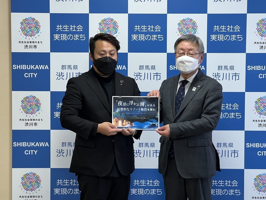 渋川市役所にて、グランピングリゾートのオープンに関して、記者会見をさせていただきました。各テレビメディアの方、新聞社の方、ご参加いただきありがとうございました。渋川市長(高木市長)にもご挨拶いただきました。