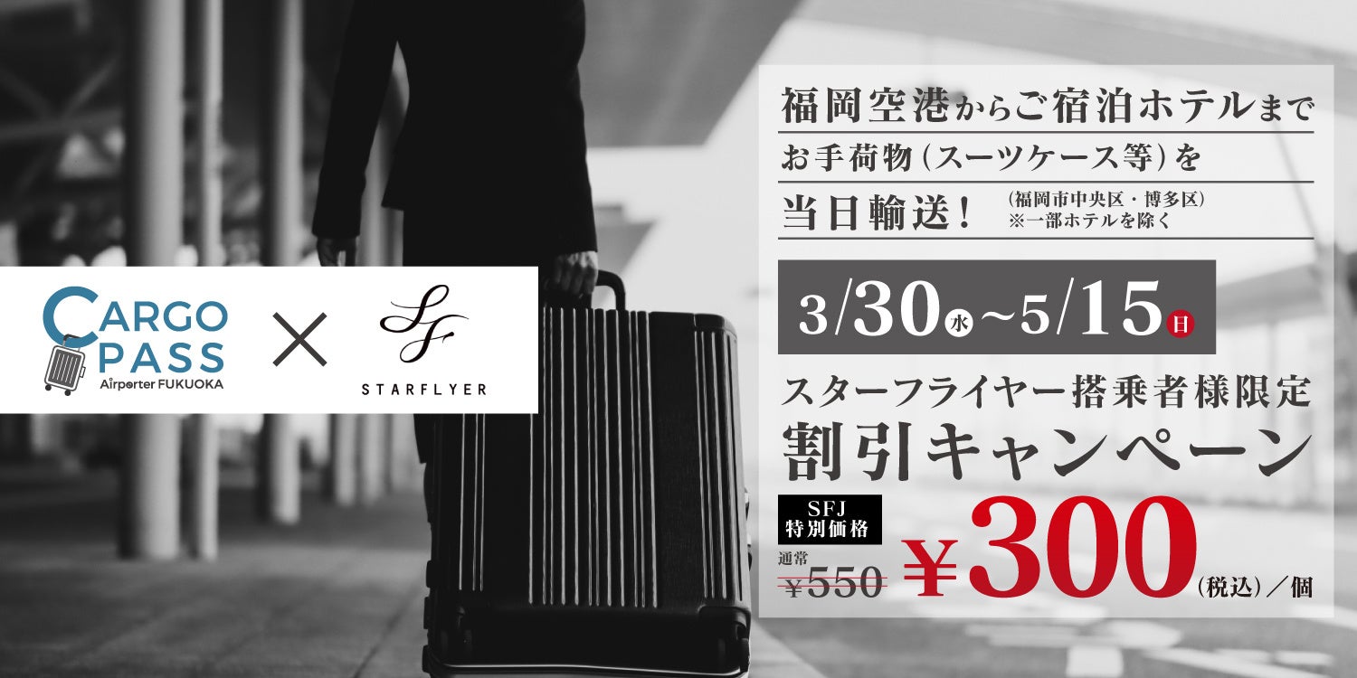 スターフライヤー(SFJ)と旅行業界で話題の【カゴパス】がコラボキャンペーンを実施!!福岡は “手ぶらで出張・観光できる街” を実現!!〜荷物は持たずに、旅する時代〜
