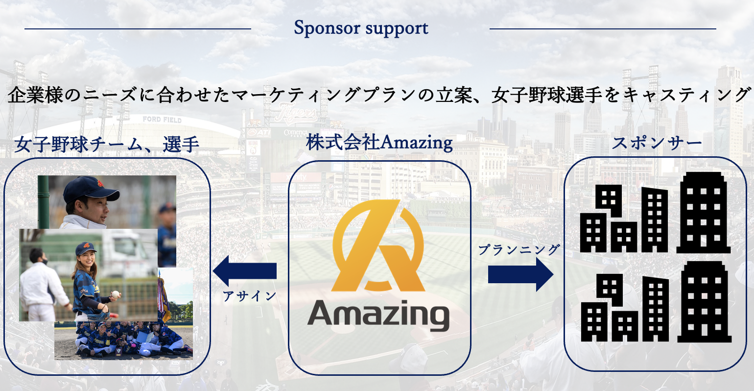 企業様のニーズに合わせたマーケティングプランの立案、実行、女子野球選手のキャステイングを行います。