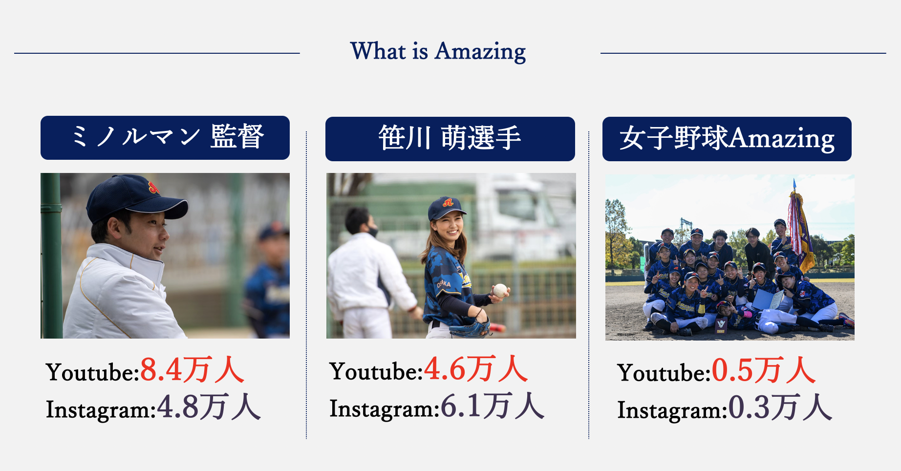 野球Youtuberのミノルマンが代表を務める 株式会社Amazing(本社:大阪府八尾市 代表取締役:廣畑 実)は女子野球選手の活動を支援する『女子野球選手に特化したDX支援/タレント支援事業』を開始します。