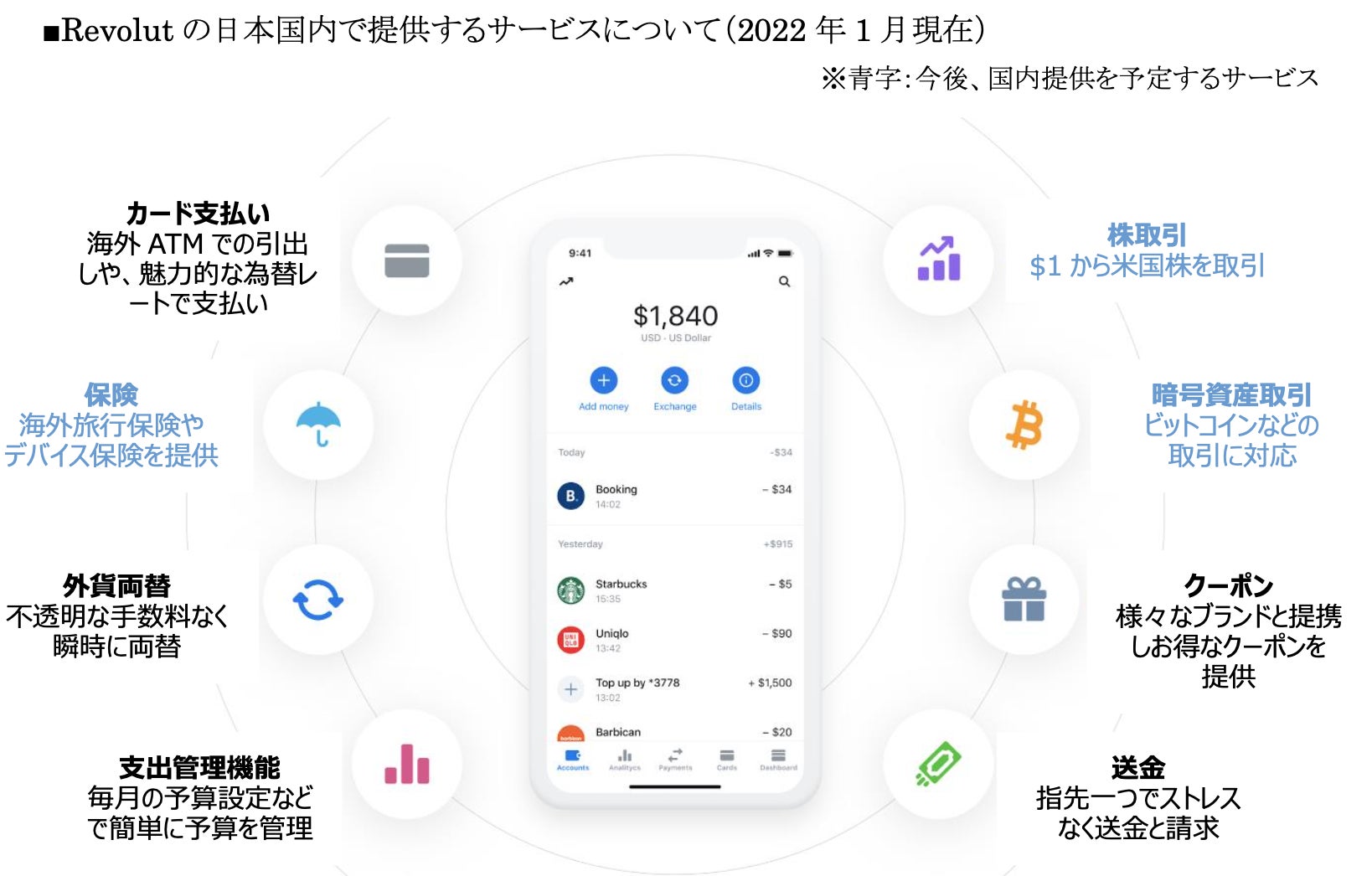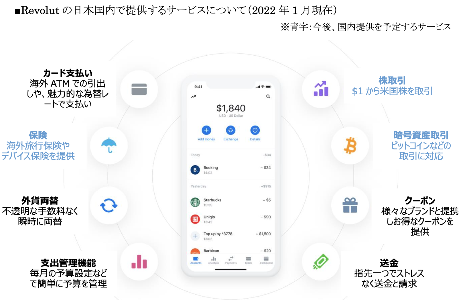 Revolut のビジョンは、真にグローバルな金融スーパーアプリを構築し、お金にまつわるあらゆる場面においてお客様がアプリから資産を簡単・効率的に一元管理できるようにすることです。今後も引き続き日本のお客様により便利で安全な新機能を提供してまいります。