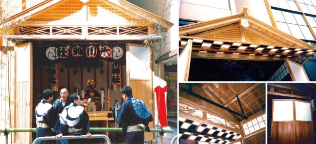 「御仮屋」(おかりや)とは、お祭りの期間にのみ造られ、神輿渡御の際に一時的に神輿が休む「仮の宮」のこと。御仮屋の存在は町の祭の気分を一気に盛り上げます。本展では、2018年より当館に寄託されている木製の御仮屋を、鳶頭(かしら)の手でウッドデッキに再建。通常は神輿が入るために立ち入ることができない御仮屋の内部をじっくりご覧いただけます。