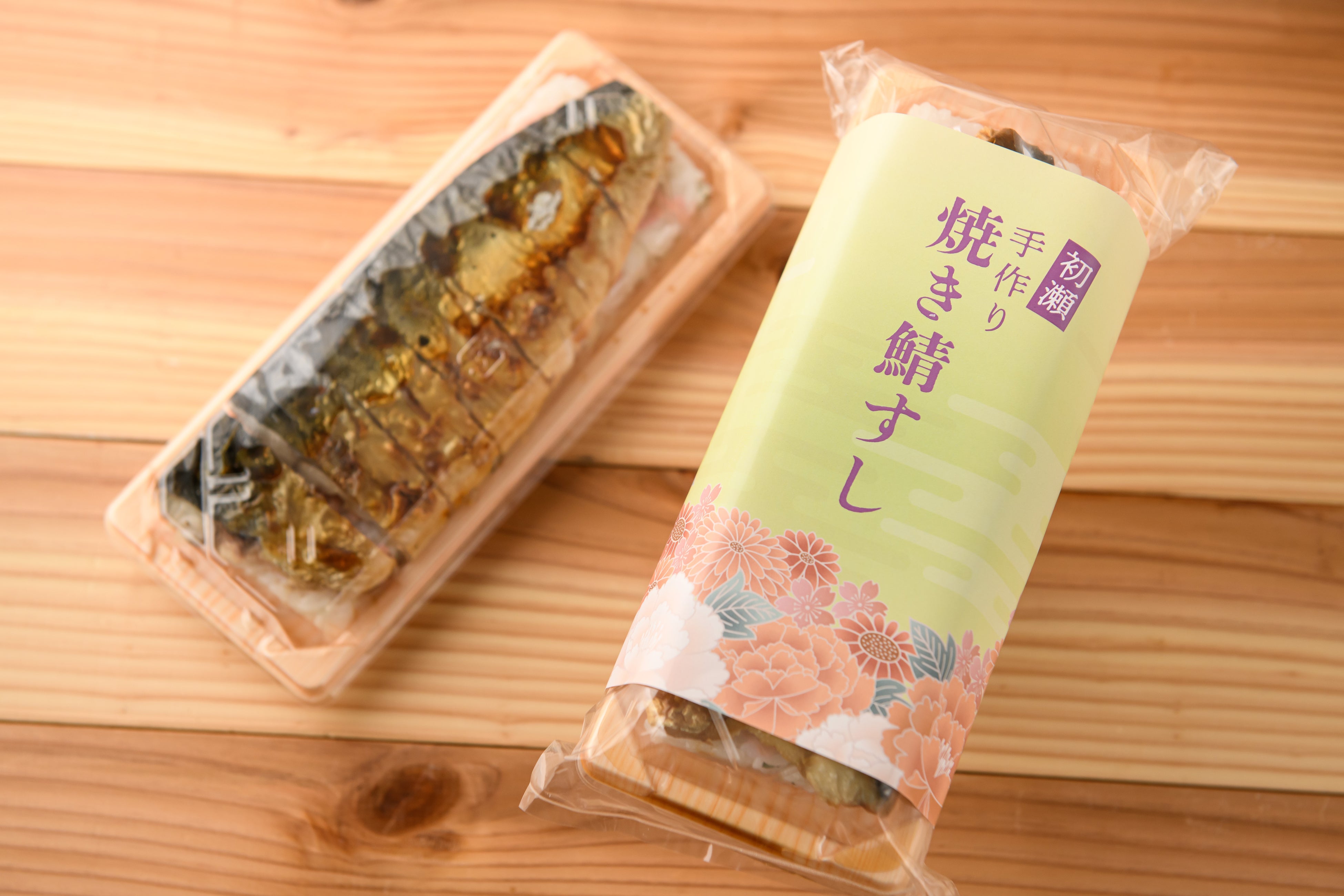 柿の葉すし とらせは清流の地である黒滝村と、長谷寺参道で柿の葉すしの製造販売を行っています。お寿司には奈良県産のお米と、国産の鯖を使用しています。焼き鯖すしは、大きな鯖を使用しており、脂も乗ってボリューム満点。シャリには大葉と胡麻としょうがが入って相性抜群。満足間違いなし!若い世代のお客様に手に取っていただけるよう、明るい色のパッケージに変更しました。色とりどりの花をデザインし、初瀬の四季折々を表現しています。