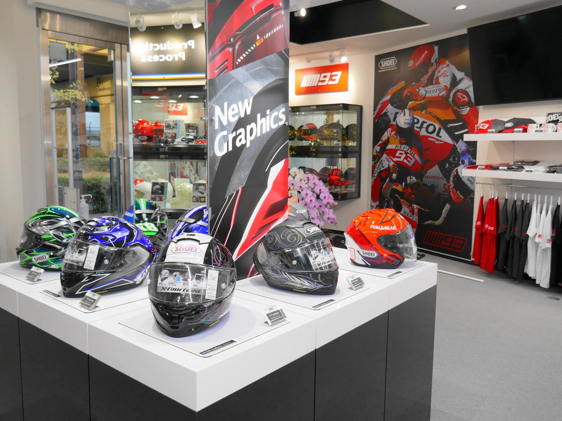 当日の会場となる「SHOEI Gallery OSAKA」はSHOEIのオフィシャルショールームとして昨年の12月に大阪市淀川区西中島にオープンいたしました。このショールームでは製品の販売だけでなく、SHOEI契約ライダーの本人用ヘルメットや写真を展示しており、また、ヘルメットの内装調整サービス「SHOEI Personal Fitting System」を常時実施、メーカーオフィシャルならではの体験ができるショールームとして、オープン以来多くのお客様にご来場をいただいています。