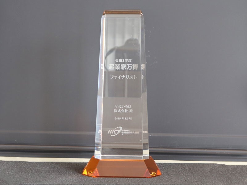 いえいろは株式会社は、2021年12月26日に開催された「ももスタアクセラレータープログラム中間発表会」にてNICT賞を受賞し、起業家万博への出場権を獲得しました。今回の起業家万博への出場を通して、「やねいろは」の認知度向上を目指しました。「やねいろは」を広めることで、屋根リフォームを検討するエンドユーザーが抱える課題解決を進めるとともに、職人の世間的評価を高め、社会課題を解決したいと考えています。
