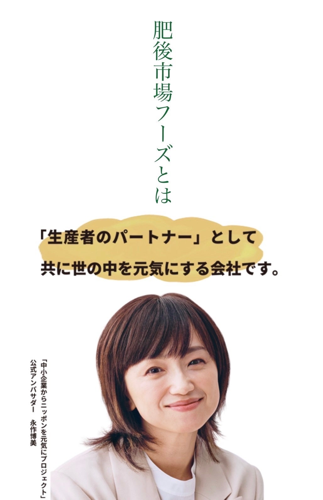 【株式会社 肥後市場フーズ】「中小企業からニッポンを元気にプロジェクト」に参画し、公式アンバサダー永作博美さんの広告素材を用いたプロモーションを開始