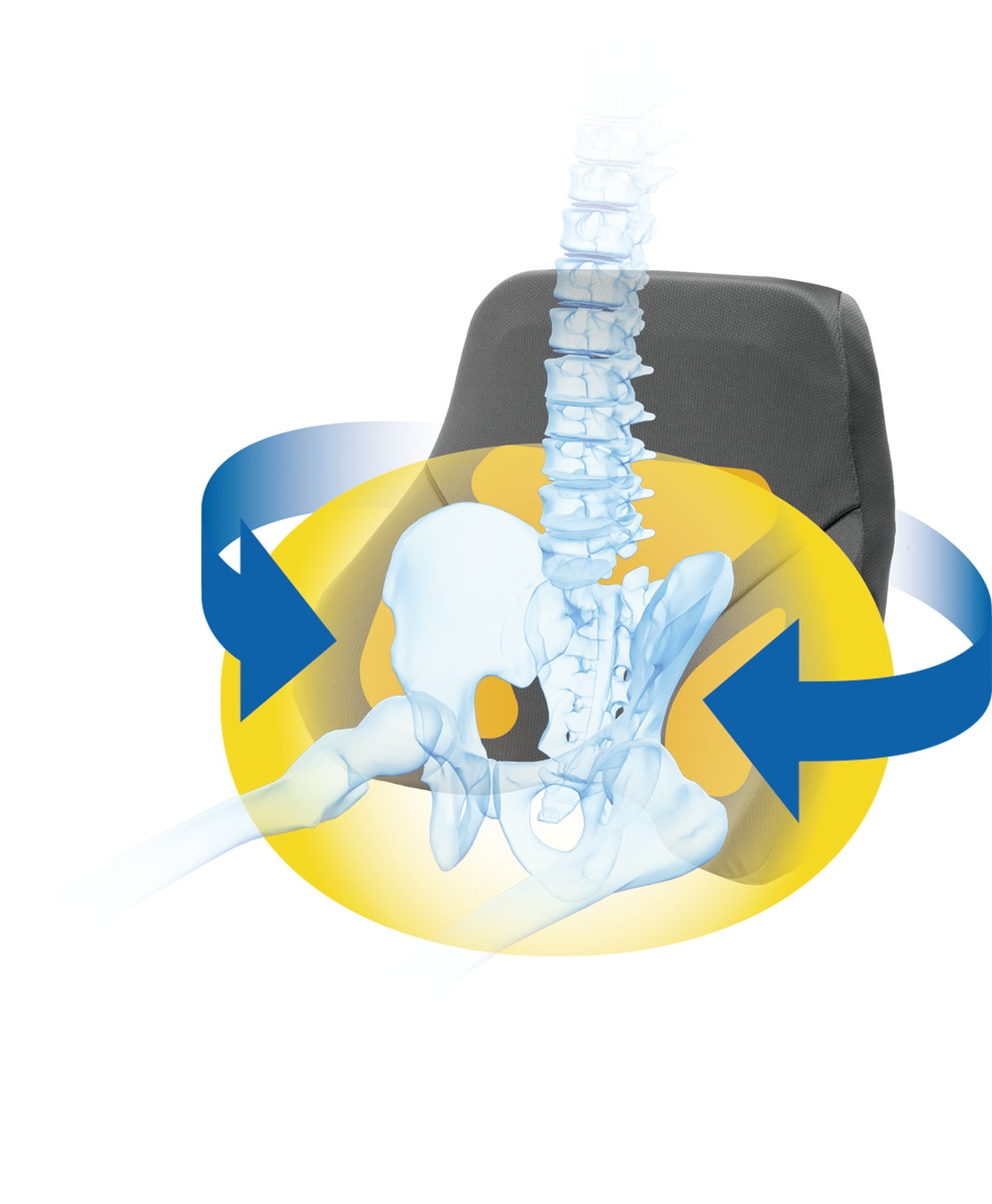 独創のサポート構造で、腰椎・仙骨・骨盤をしっかりと支えます。骨盤をしっかりと支持するため腰に負担がかからず、S字カーブを維持しやすく自然に良い姿勢で座ることができます。