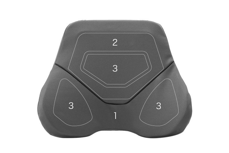シミュレーター用バケットシートに最適な形状のランバーパッドは、腰の後ろにできる隙間を埋め骨盤を適切な角度に維持。長時間ドライビングに集中できます。