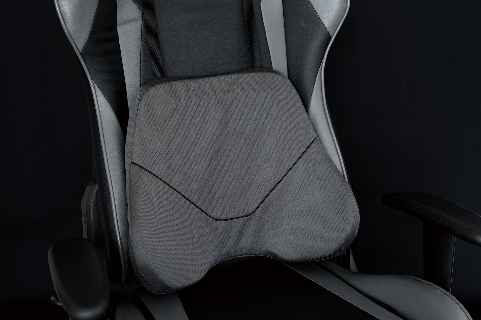 ゲーミングチェア専用設計で、背もたれとの隙間を埋めながら姿勢をサポート。シートの奥行きが長いゲーミングチェアでは、背もたれとの距離があり姿勢が崩れがちなため、隙間を埋める厚めの設計で、骨盤をしっかりサポートしながら、快適に座り続けられます。