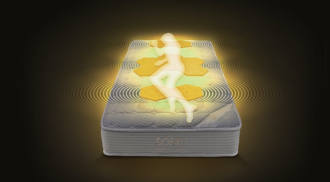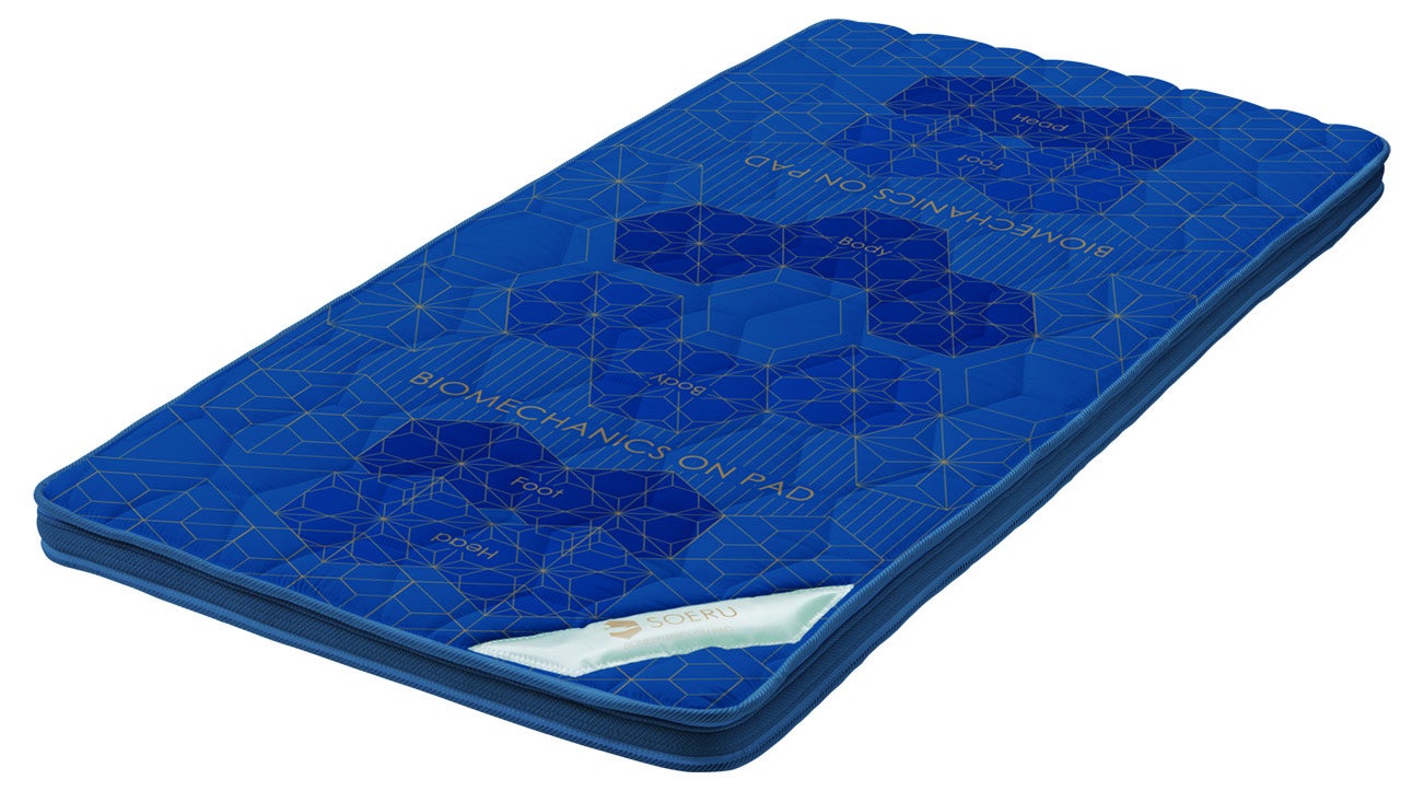 そこで当社は、マットレスに独自構造のPADをそえることで、体を支える「支点」を作り出し、快適な寝姿勢を保ちながらスムーズな寝返りをサポートする、新マットレスシステム「SOERU」を開発いたしました。機能性の高さに加え、日本に馴染みの深い「亀甲」をモチーフとした見た目やあたたかみのある柑橘系の色合いの「パッド」など、見た目にもこだわりました。