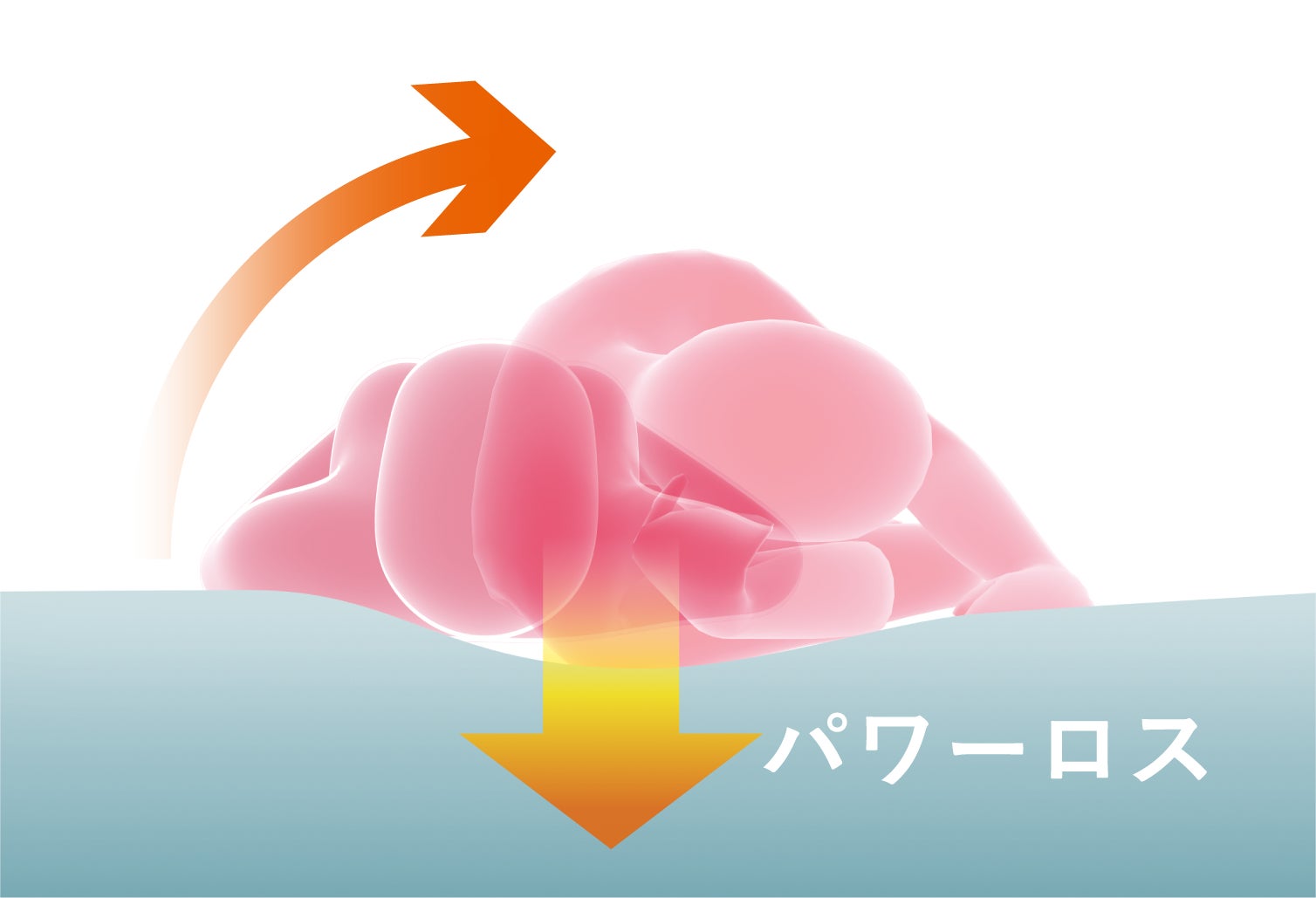 体の部位はそれぞれ重さが異なり、体重の多い部分は沈む一方、軽い部分は沈み込みが少なく、快適な寝姿勢を保つことが難しいため、寝返りを打つ際に多くの筋力を必要とします。