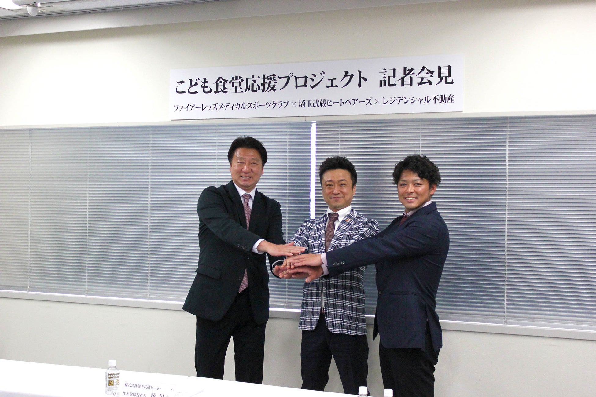 株式会社レジデンシャル不動産(本社さいたま市代表取締役内田廣輝)は、 NPO法人ファイアーレッズメディカルスポーツクラブ(森士理事長浦和学院高・前監督)と、プロ野球BCリーグ埼玉武蔵ヒートベアーズ(代表取締役兼監督角晃多)と共同で、 「こども食堂応援プロジェクト」を始動することを発表