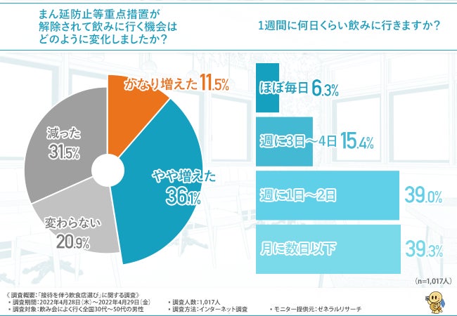4割以上が『まん延防止等重点措置が解除されて飲み行く機会が増えた』と回答