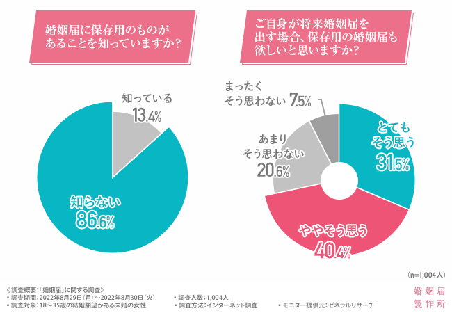 そこで、「婚姻届に保存用のものがあることを知っていますか?」と質問したところ、8割以上の方が『知らない(86.6%)』と回答しました。