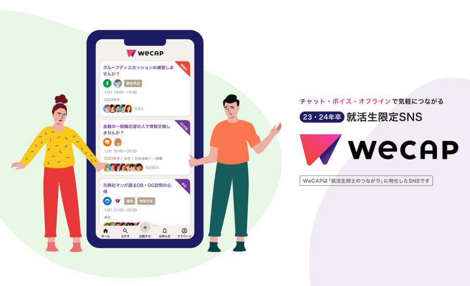 新しい就活のカタチ、就活生限定SNS「WeCAP」をリリース