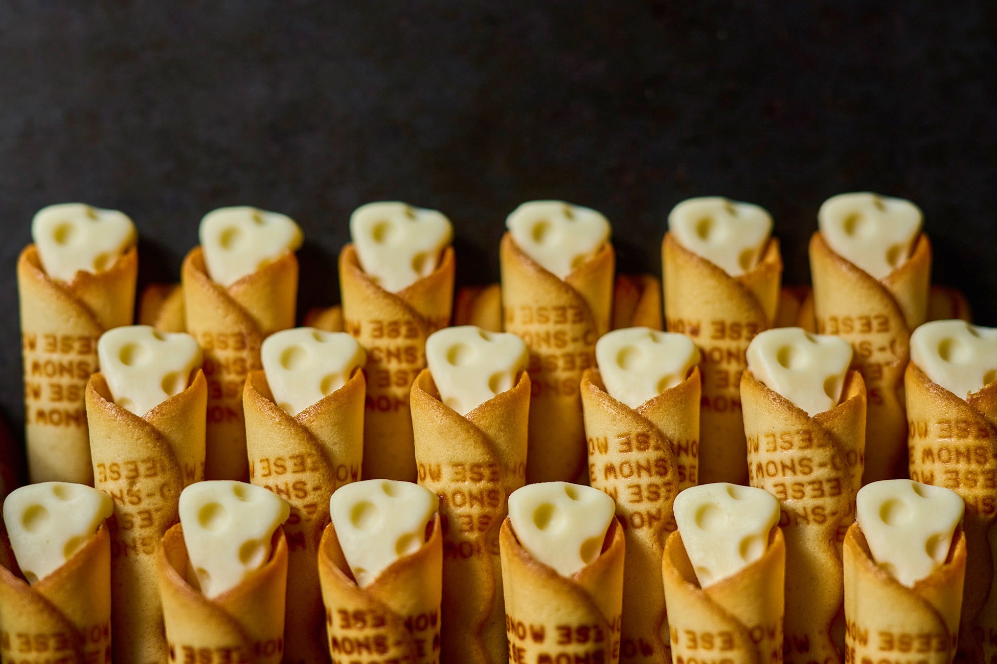 チーズの美味しさを凝縮した生食感のチョコレートを香ばしいサクサクの生地で包みました。