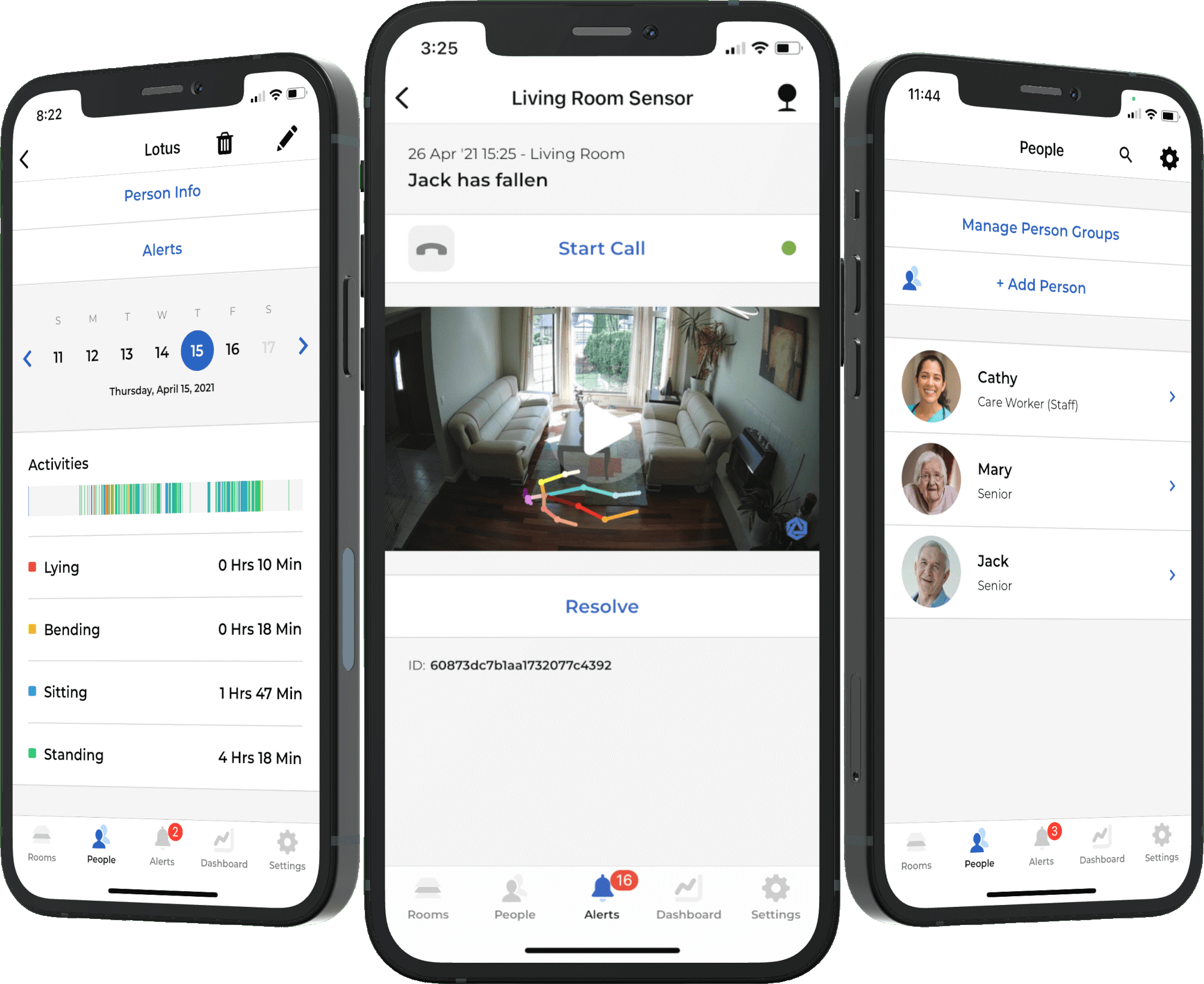 - 転倒(転んだ、ベッドからの落下)をアプリ経由でお知らせ