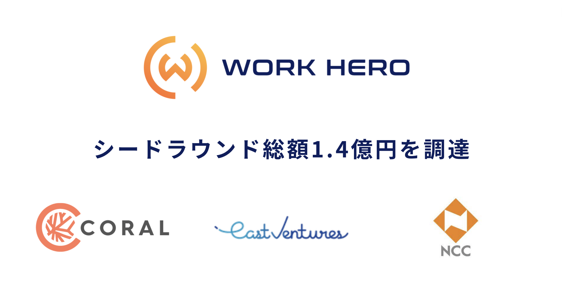 シード・アーリーフェーズのスタートアップを中心として、特にコーポレート専任担当がいない企業向けに、最適に設計・運用されるオールインワンのクラウド型バックオフィスサービス「WORK HERO」(https://workhero.co.jp/products/)を運営するWORK HERO株式会社(本社:東京都千代田区、代表取締役:大坪 誠、以下 WORK HERO)は、Coral Capital・East Ventures・ニッセイキャピタルを引受先とする新株予約権の発行による資金調達により、総額1.4億円の資金調達を実施したことをお知らせいたします。