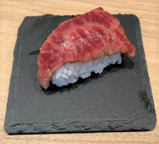 「焼肉ホルモン ひろ屋」の牛寿司は、上質なお肉を使用しており、お客様の目の前で炙ってからご提供しております。美味しいことはもちろん、目の前の実演調理もお楽しみいただけます。