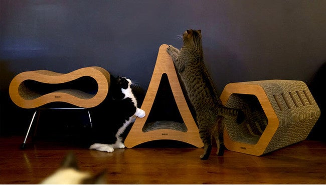 立てたり寝かせたり。 三角形の爪とぎトンネル。 三角形のキャットスクラッチです。 伸びをしながら爪を研いだり、 中をくぐったり、 立てた状態で使用したり滑り台のように横に寝かせて使用したりと使い方もお部屋に合わせて。 大小での組み合わせや、 他のデザインの爪とぎとの組み合わせで様々な猫用アスレチックにも。
