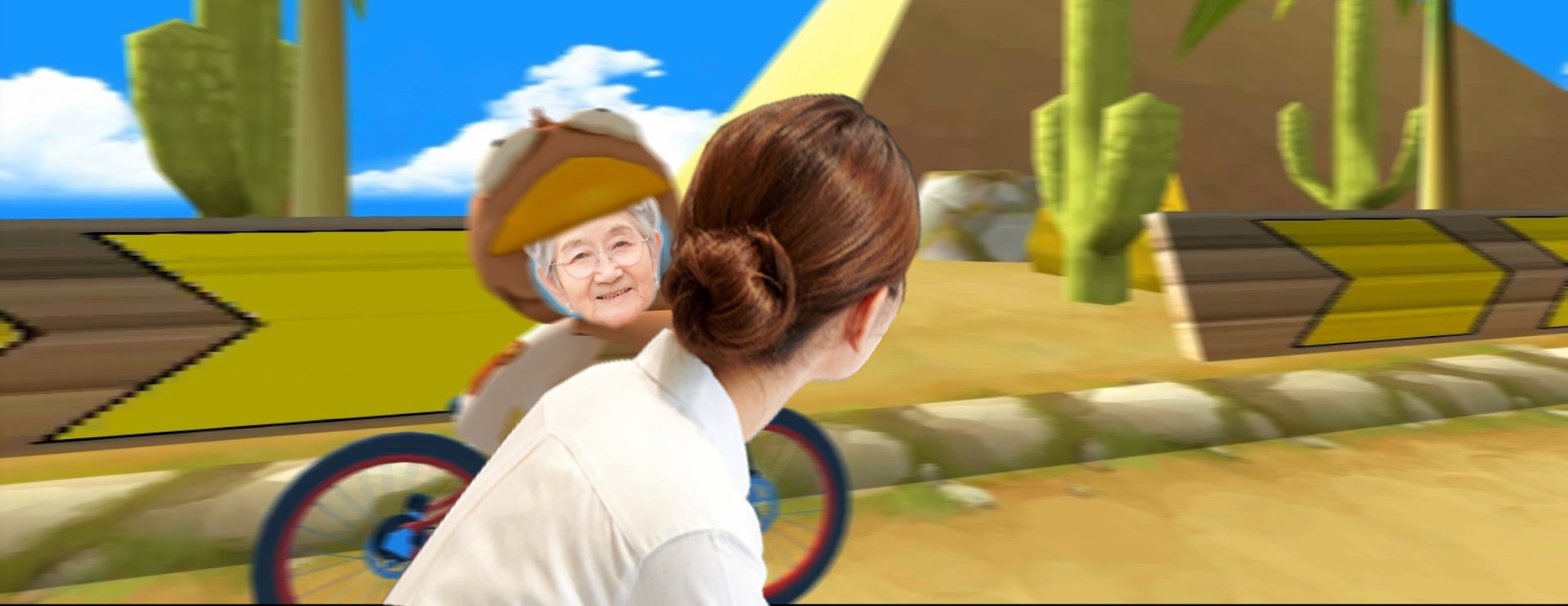 本製品では、さまざまな理由でジムや運動教室に通うことのできない高齢者や低体力者でも、自宅などで適切なトレーニングを実施できる。VR を用いることで他者との交流ができモチベーションにつながると考えられる。フィットネスバイクでの有酸素運動の効果はもとより、コロナ禍で感染避けるための外出行うことなく運動ができる点、VRでの他者との交流等社会性が担保できる点において、フレイル予防において非常に有効であると言える。