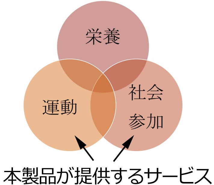 コロナ禍の今では、後期高齢者のフレイル進行の対策として、各自治体において高齢者のコミュニティの場や通いの場などの利用が推進されているが、歩行状態の悪化、体力低下のため困難となるケースが散見される。しかし、この商品が普及することによって、日常生活における動作の改善し、コミュニティの場、通いの場などでの活動に参加でき、高齢者の行動変容を促すためのソリューションとなると考えられる。