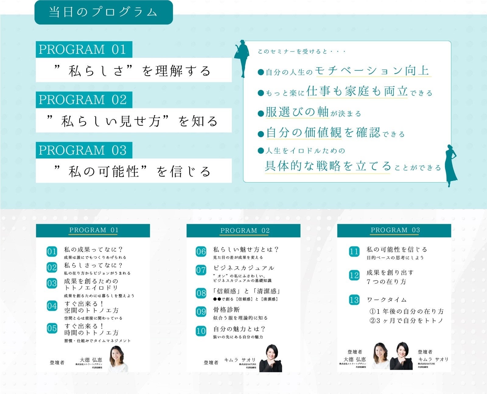 ※1共創、共成(共に創り、共に成長する):このイベントは一方的な講義形式ではありません。参加型のセミナーで、参加者と共に創りあげていきます。セミナーを通し、参加者がより深い学びや気づきを得られるようインプットのみならず、簡単なワークなどを行なっていただく予定です。