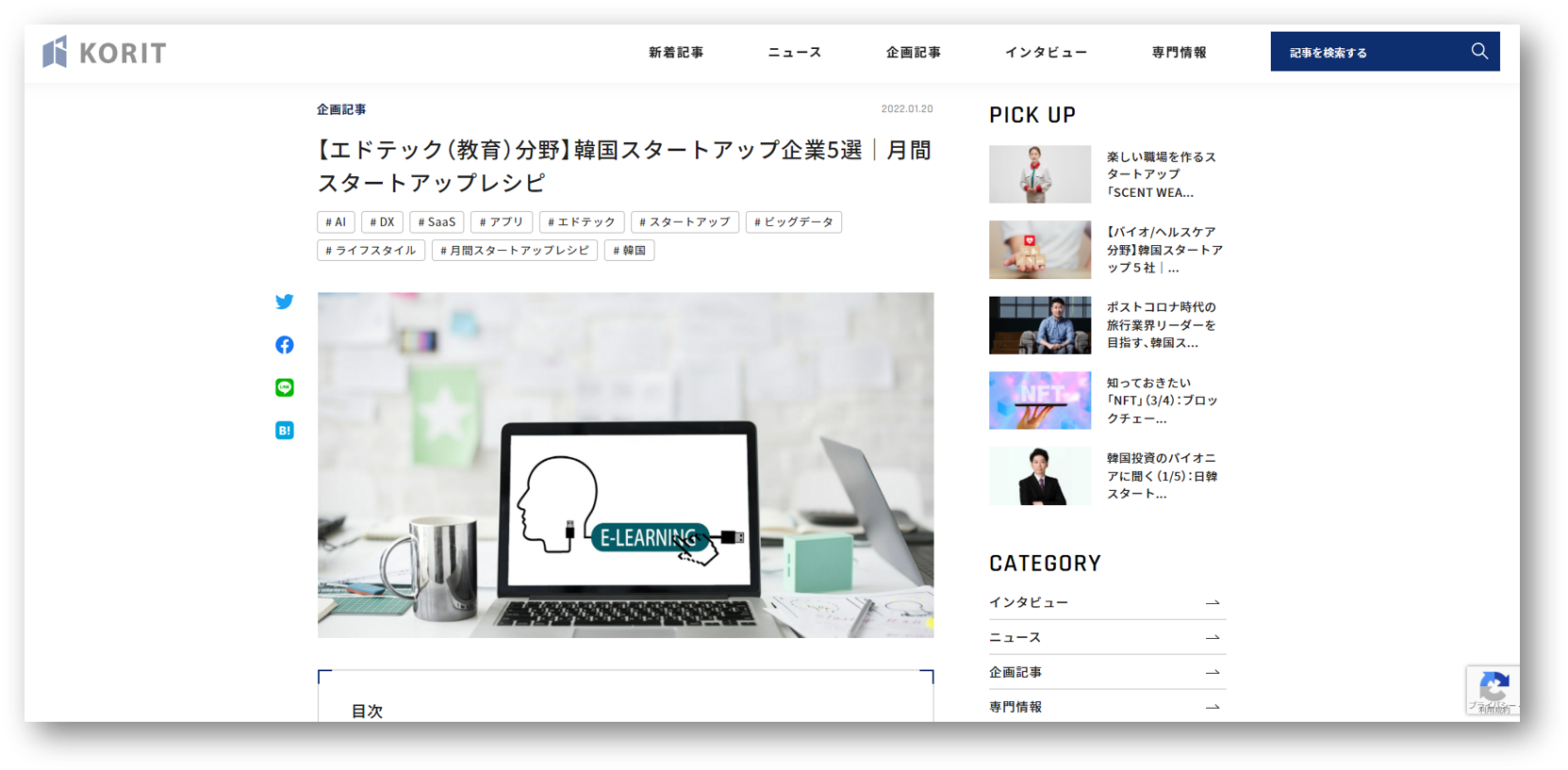 「KORIT」は独自のネットワークを活かし、注目企業の経営者や投資家へのインタビュー記事を提供します。また、日本側目線からの切り口で、韓国の業界を理解するための企画記事を独自に執筆・提供します。