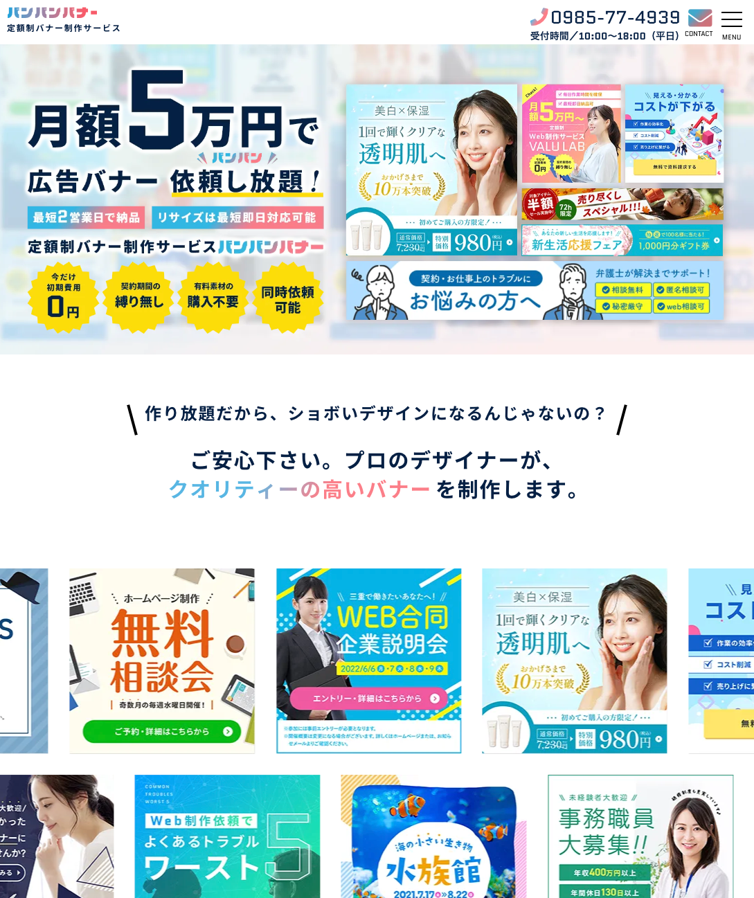 2023年10月開設の新サービス「バンバンバナー」は制作点数に関わらず毎月固定の費用で専属のデザイナーが窓口から納品まで一括対応いたします。