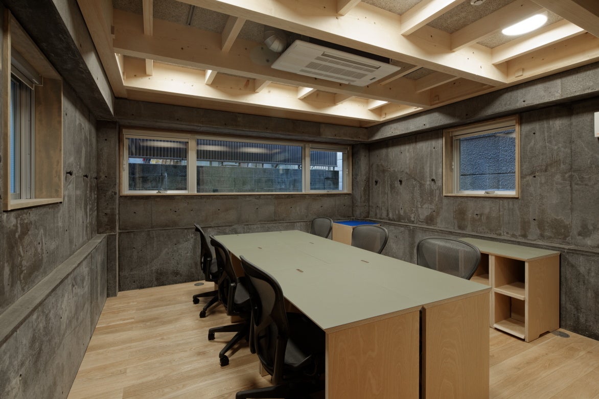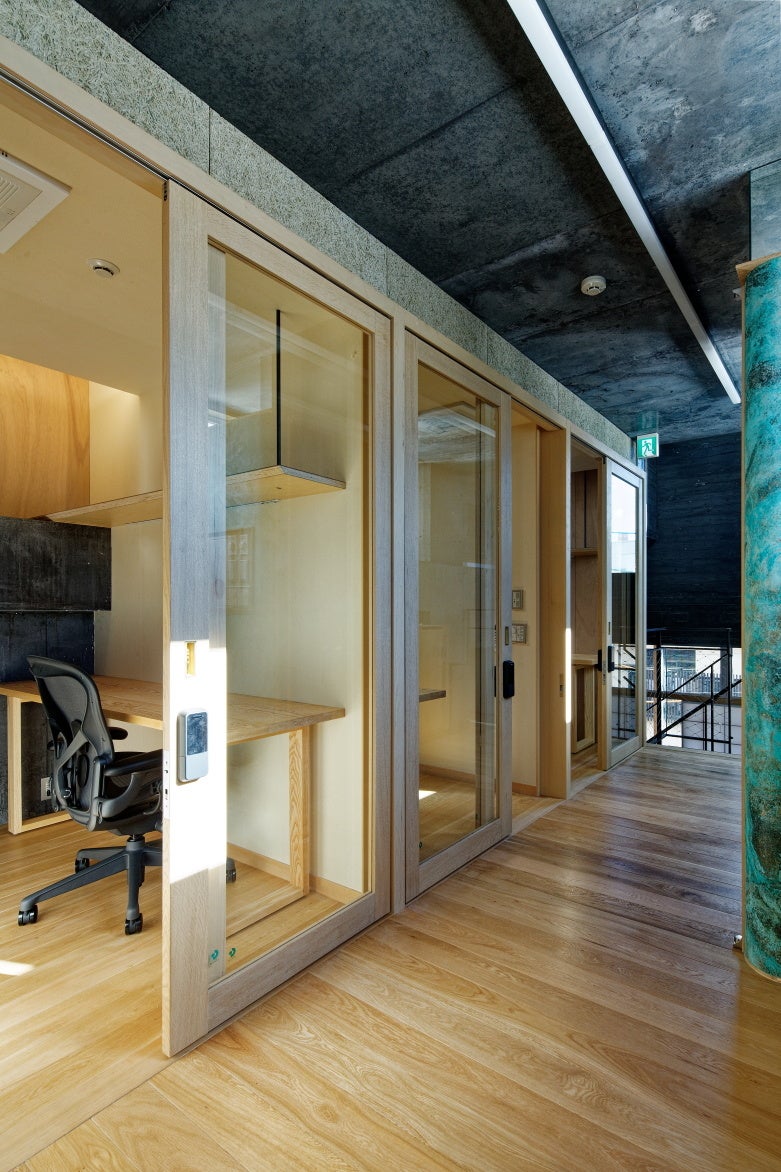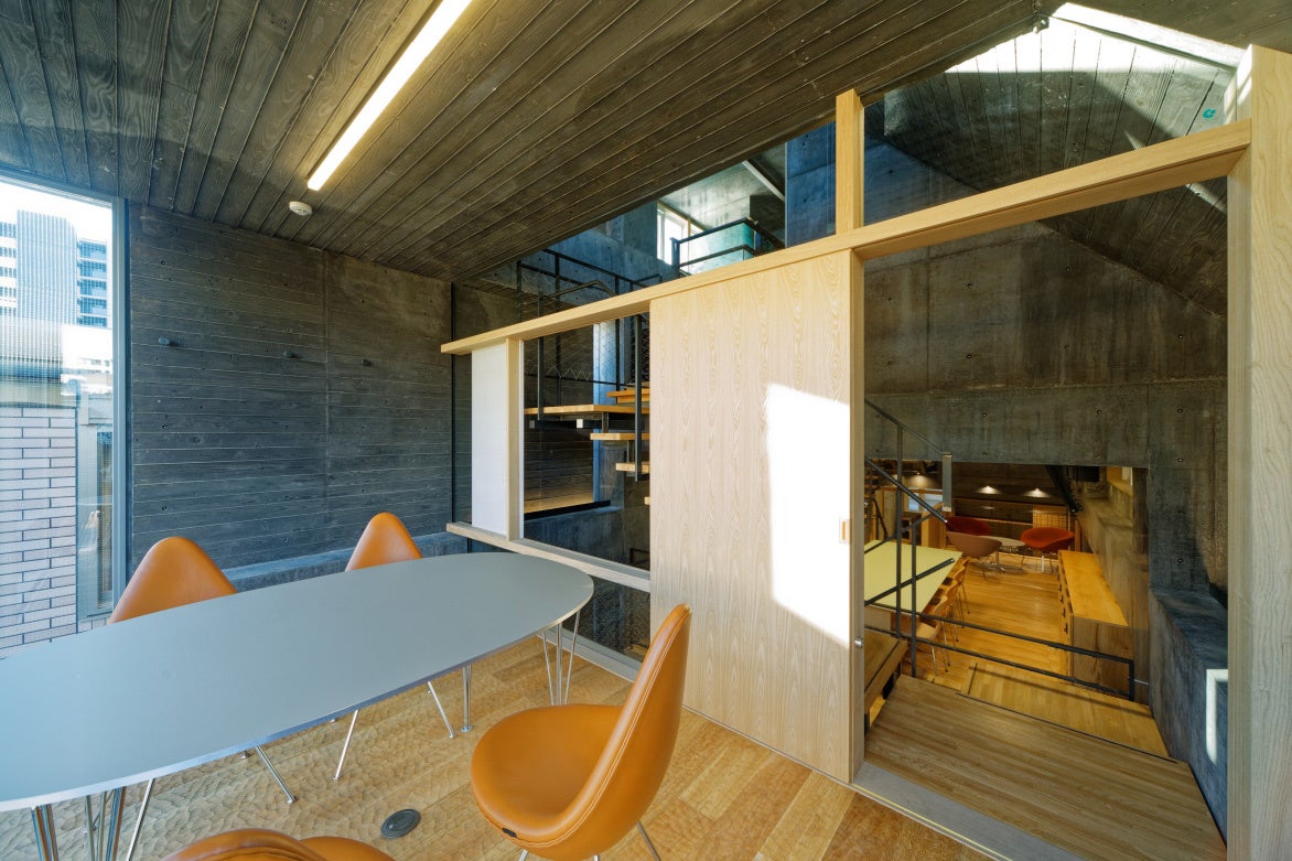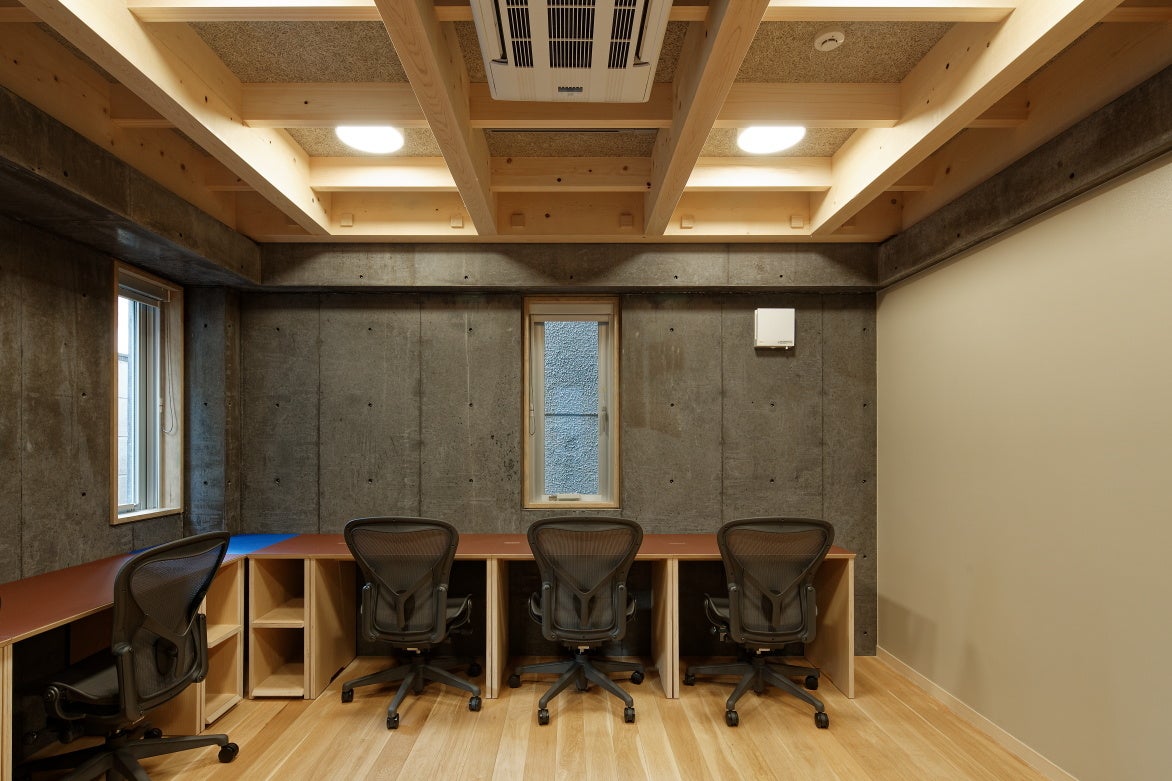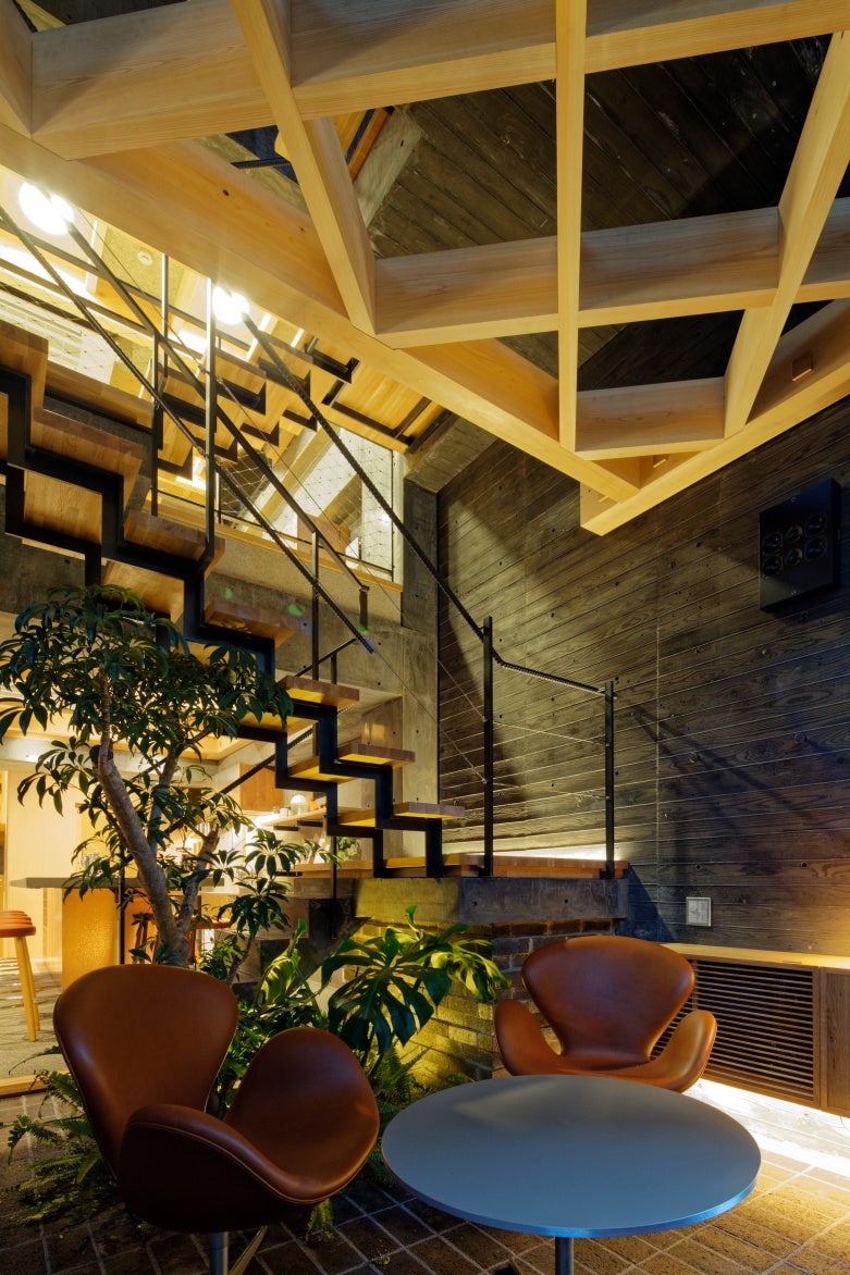 鉄筋コンクリートと木造が融合した4層のスキップフロアの空間で、クリエイティブな働き方を。