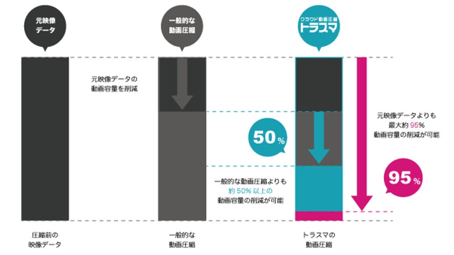 は2022年1月6日より、クラウド上で簡単にキレイなままデータ量だけ小さくするクラウド動画圧縮「トラスマ」のサービスを開始いたしました。映像を圧縮することによって月々の保存コストや配信コストを削減し、動画に関する運用問題を解決いたします。