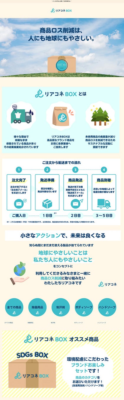 日用消耗品メーカーの廃棄予定在庫を、必要な特定事業者に安値で配送!メーカーの製品廃棄コストと環境負荷を軽減するBtoB販売サービス 『リアコネBOX』 ローンチ