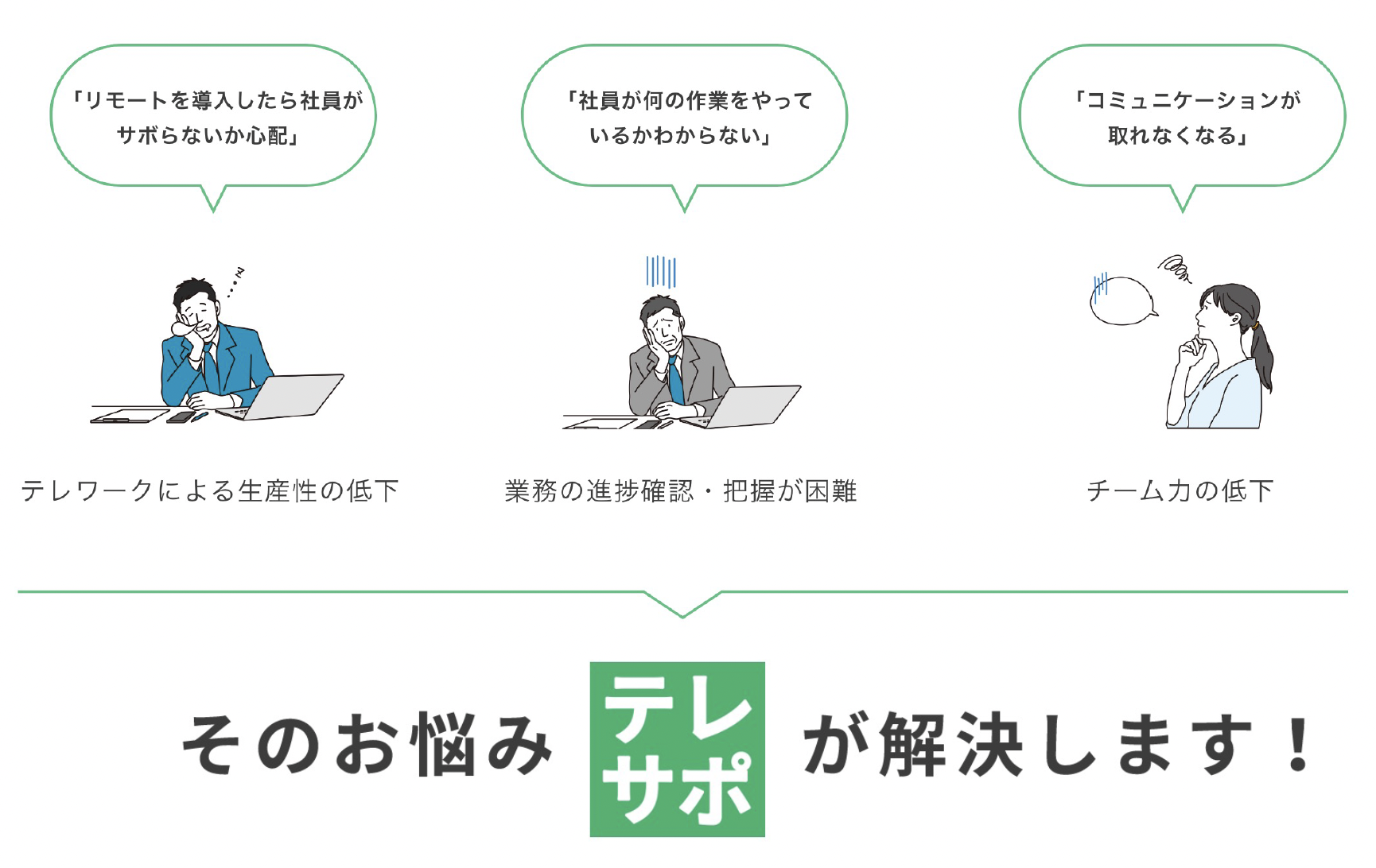 ■サボり対策!リモートワークによる⽣産性の低下、コミュニケーション不足にストップをかける!