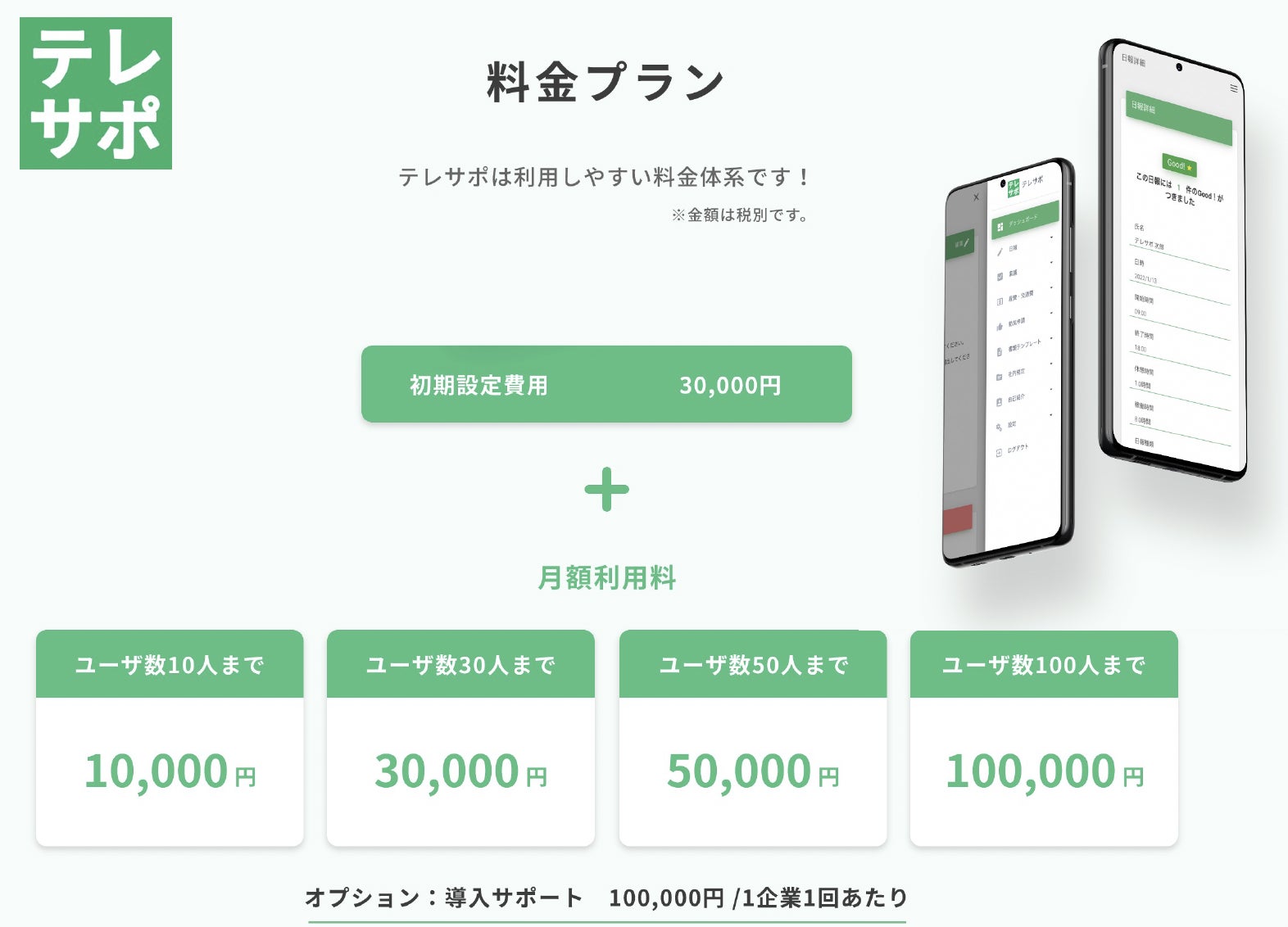 ※料⾦プラン詳細は『テレサポ』紹介サイトにて