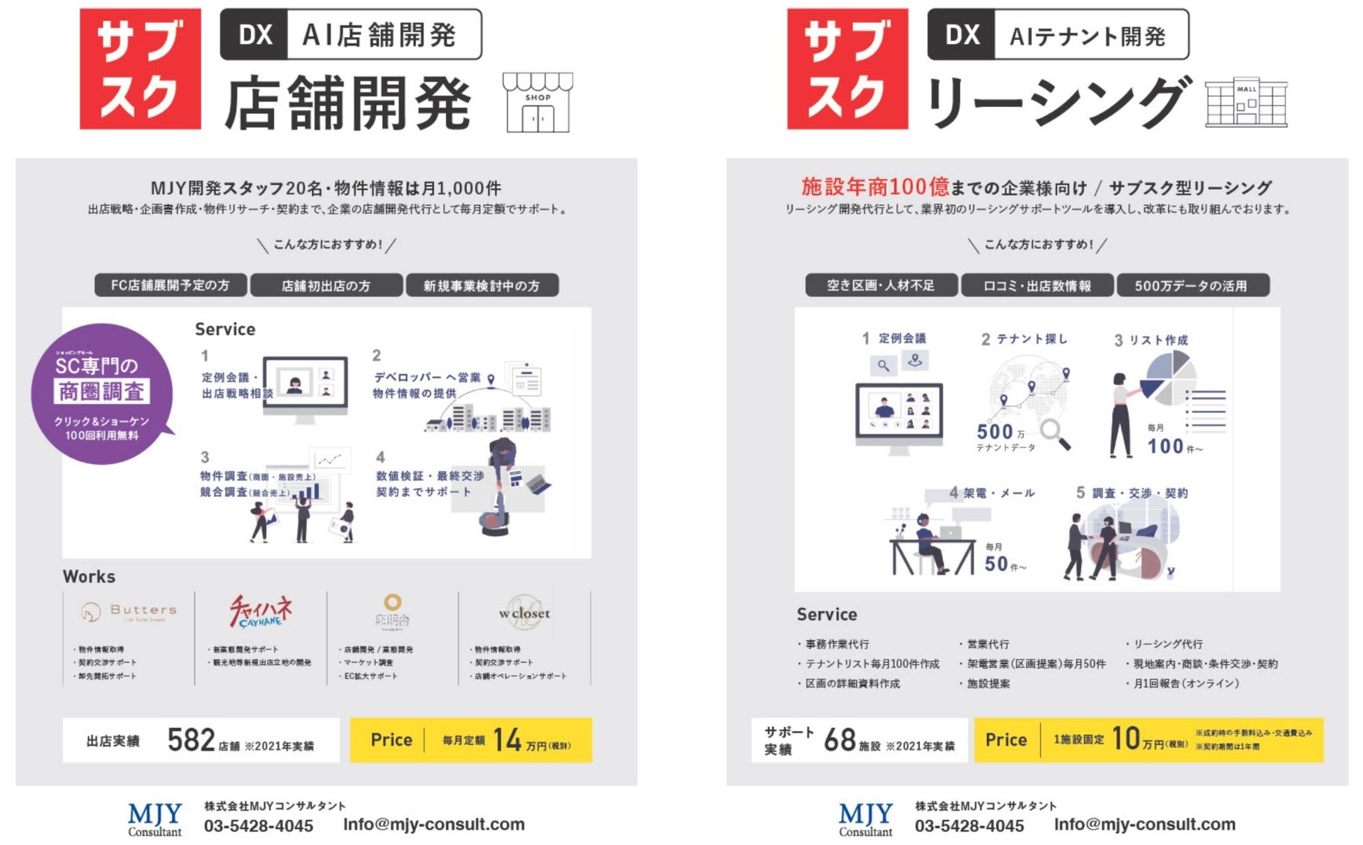 《株式会社MJYコンサルタント》(本社:東京都渋谷区恵比寿 表取締役:大和正洋)は、2022年2月より駅ビルやショッピングモールなどへの店舗出店、リーシングのサブスクリプションサービスを開始いたしました。