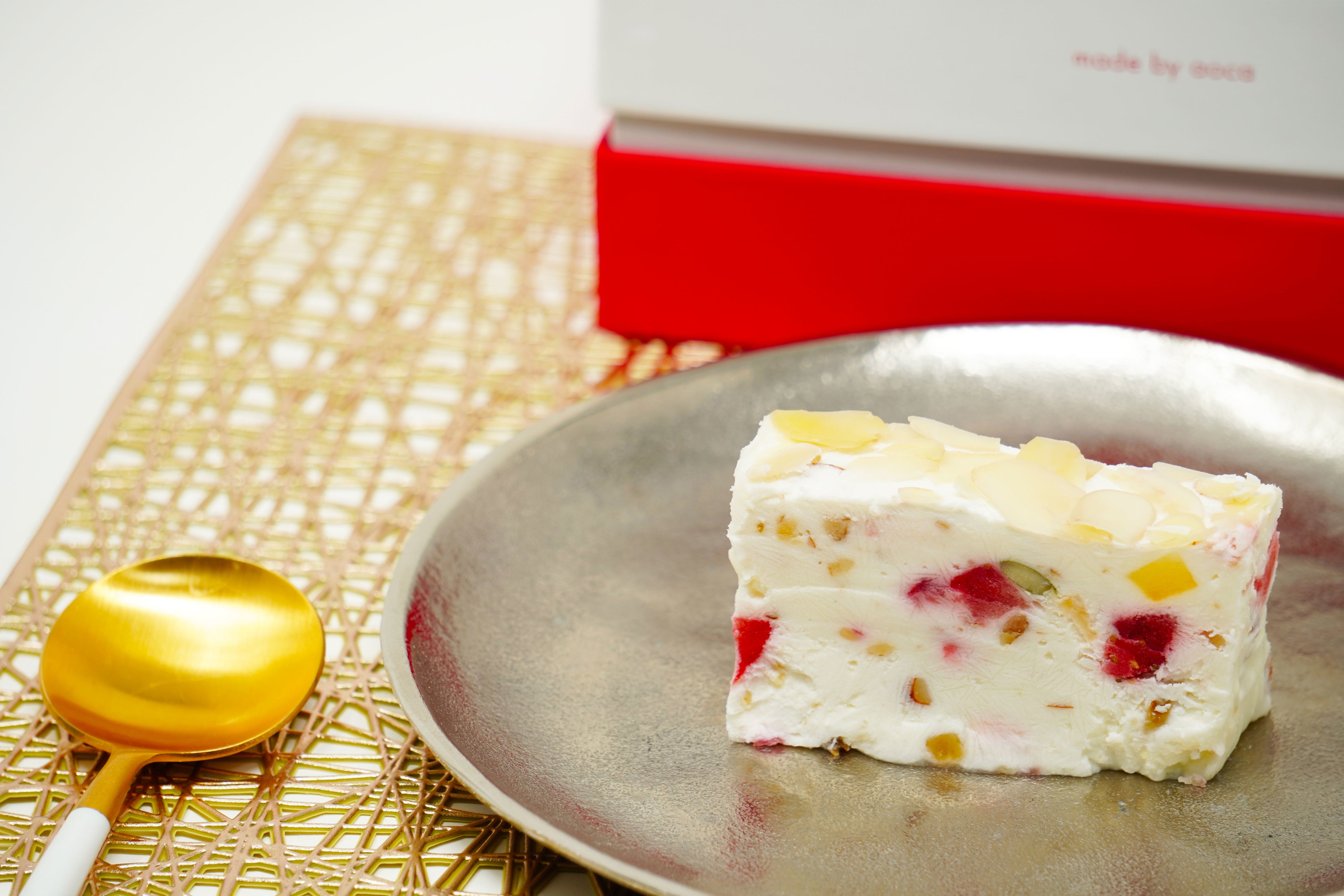 カッサータは、チーズが入ったクリームに、ナッツとフルーツを入れて冷やし固めたもの。日本ではあまり馴染みがありませんが、ほどよい甘みと華やかな見た目で、おもてなしにもぴったりのスイーツです。