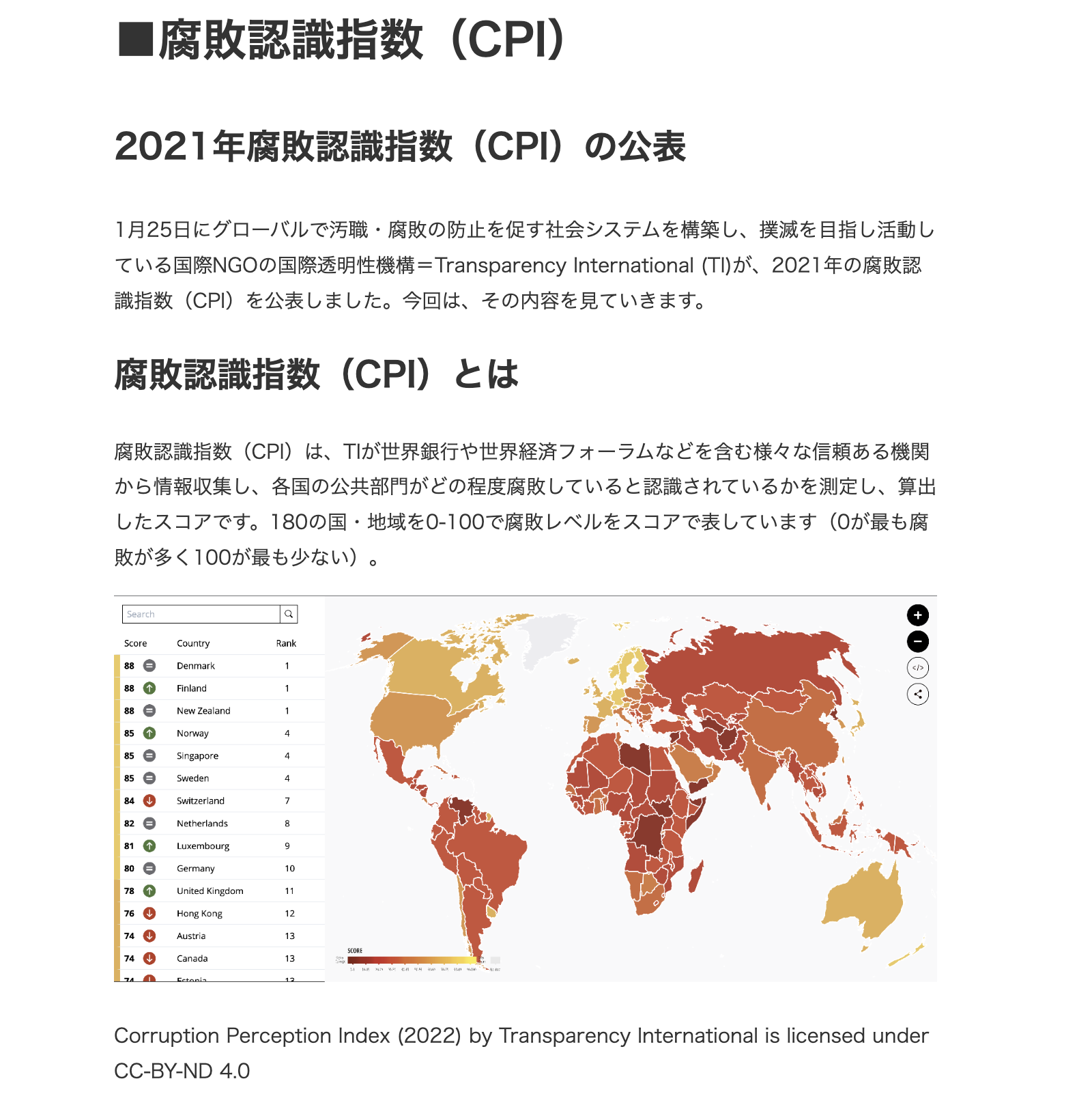 ・国際NGOの国際透明性機構(TI)が公表した2021年の腐敗認識指数(CPI)の紹介と解説