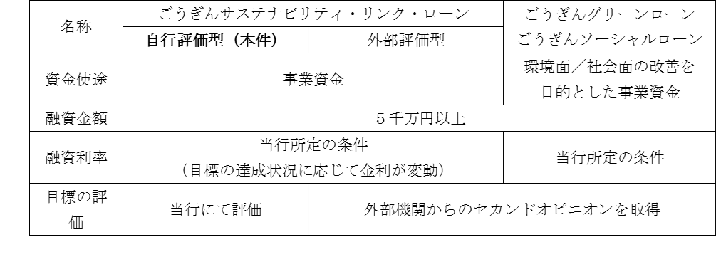 【名 称】 ごうぎんサステナビリティ・リンク・ローン(自行評価型)